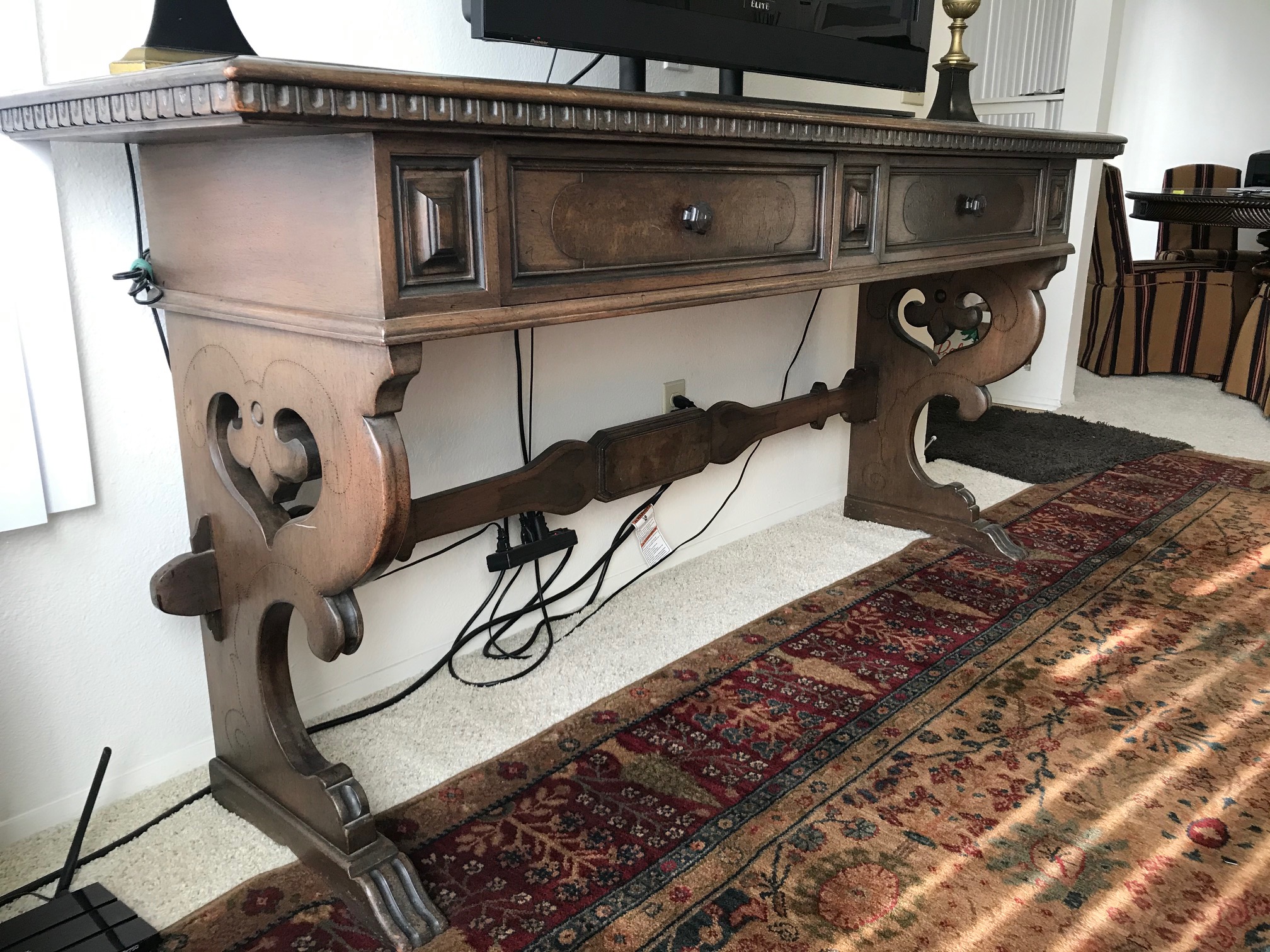 This is an attractive piece and was purchased in an antique store, purported to be 18th century? The antique dealer said he purchased this from an estate of a very old tudor mansion in the Chicago area.
