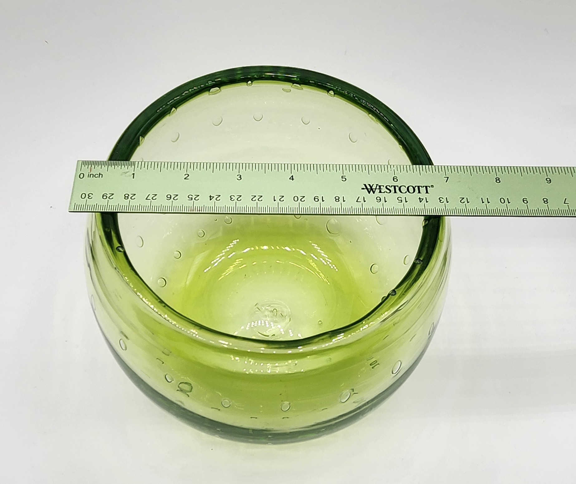 The bowl appears to be in mint condition, with no chips, cracks, or scratches visible. The clarity of the glass, the precision of the controlled bubble pattern, and the uniformity of the hand-blown design add to its value.