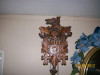 ITS MADE OUT OF WOOD IT HAS A LEAFY LOOK CARVED AROUND THE FRONT