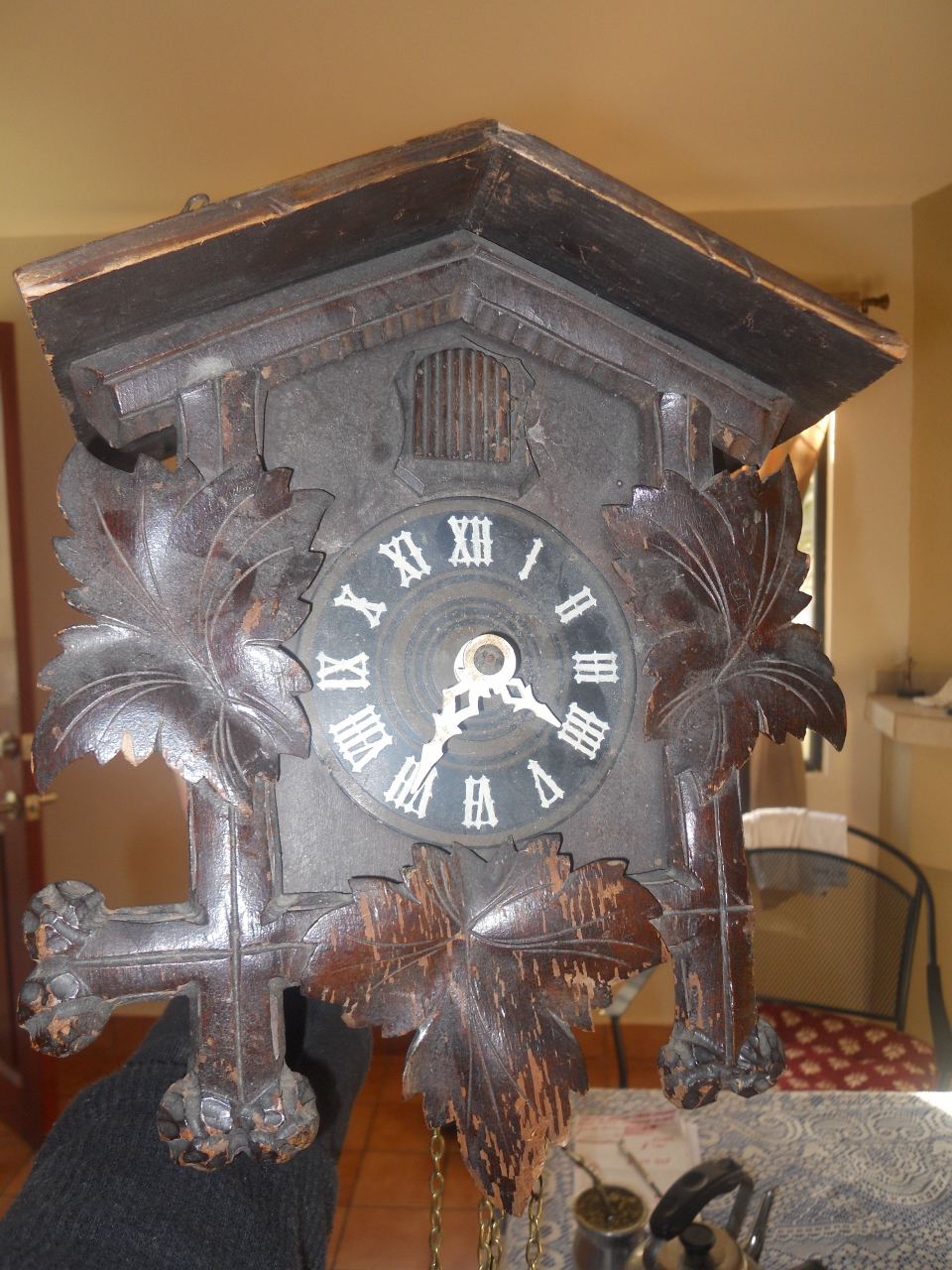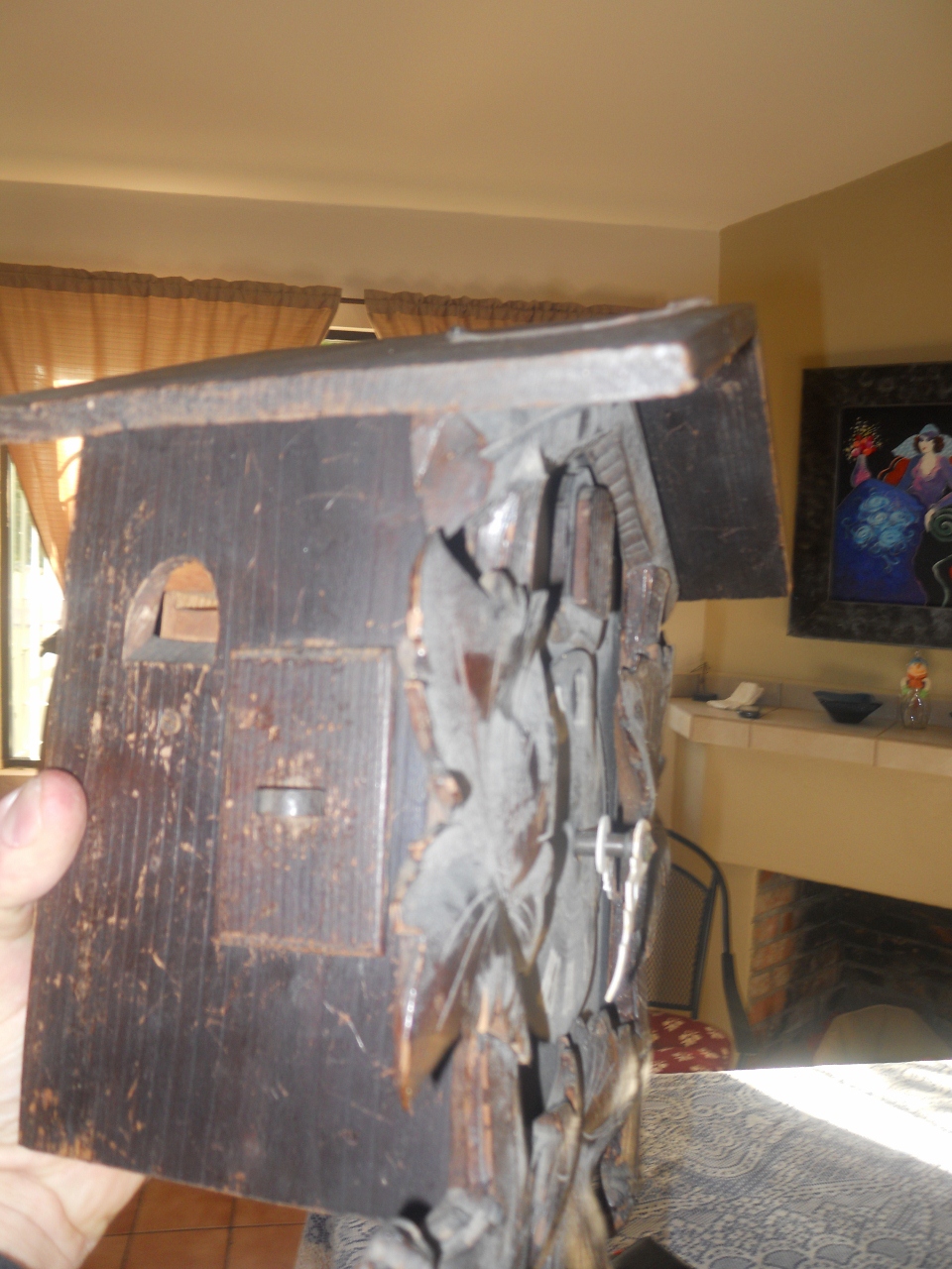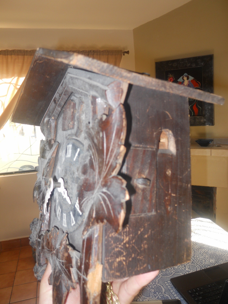 Hello, my aunt -grandmother gave me this coocoo before she passed away in 2003. It belonged to her husband (my godfather) who brought it from one of his trip to Germany back in the 40's or 50's, not really sure. We brought it from Argentina where my aunt-grandmother was from as well as my parents. I have no idea about the brand, manufacturer, year it was built, etc, all I know It has been in our pantry for almost a decade and we recenly decide to get the price from an expert. Dimensions are, 6.5"wide x 9.5" tall x 5" deep. My aunt-grandmother told me it works, but since I have no experience with coocoos, I do not not how to make it work.