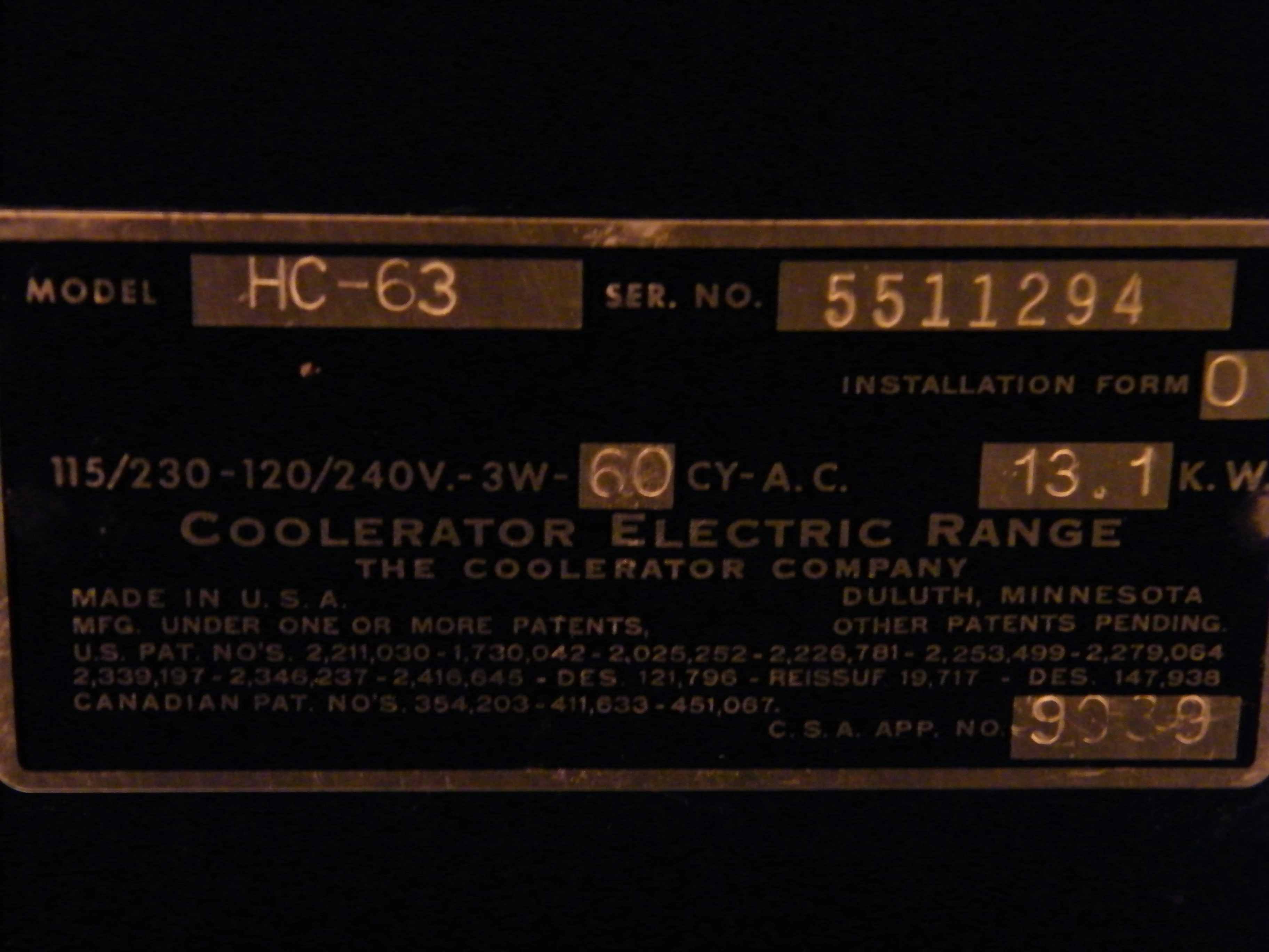 Coolator Electric Stove 1952