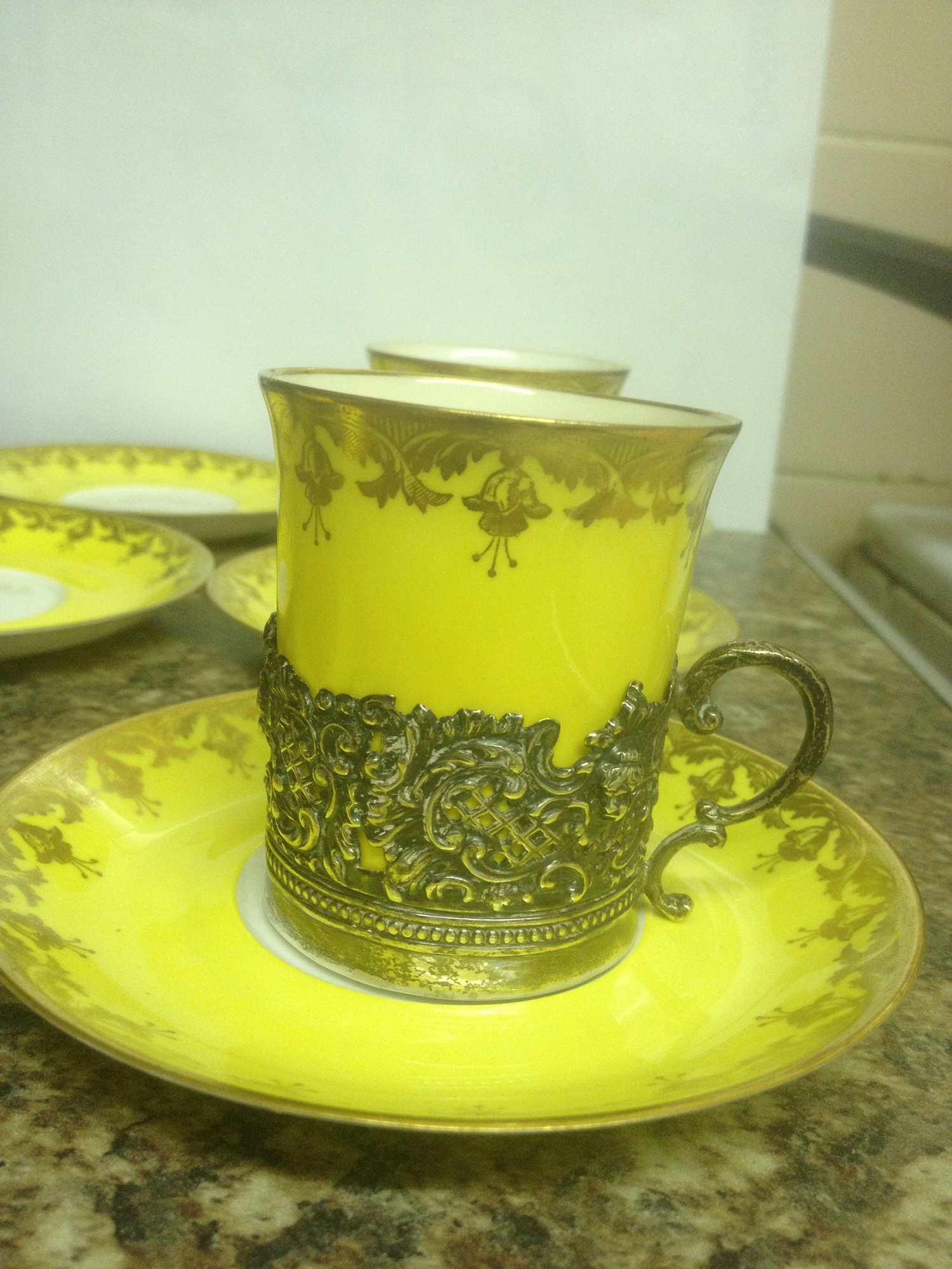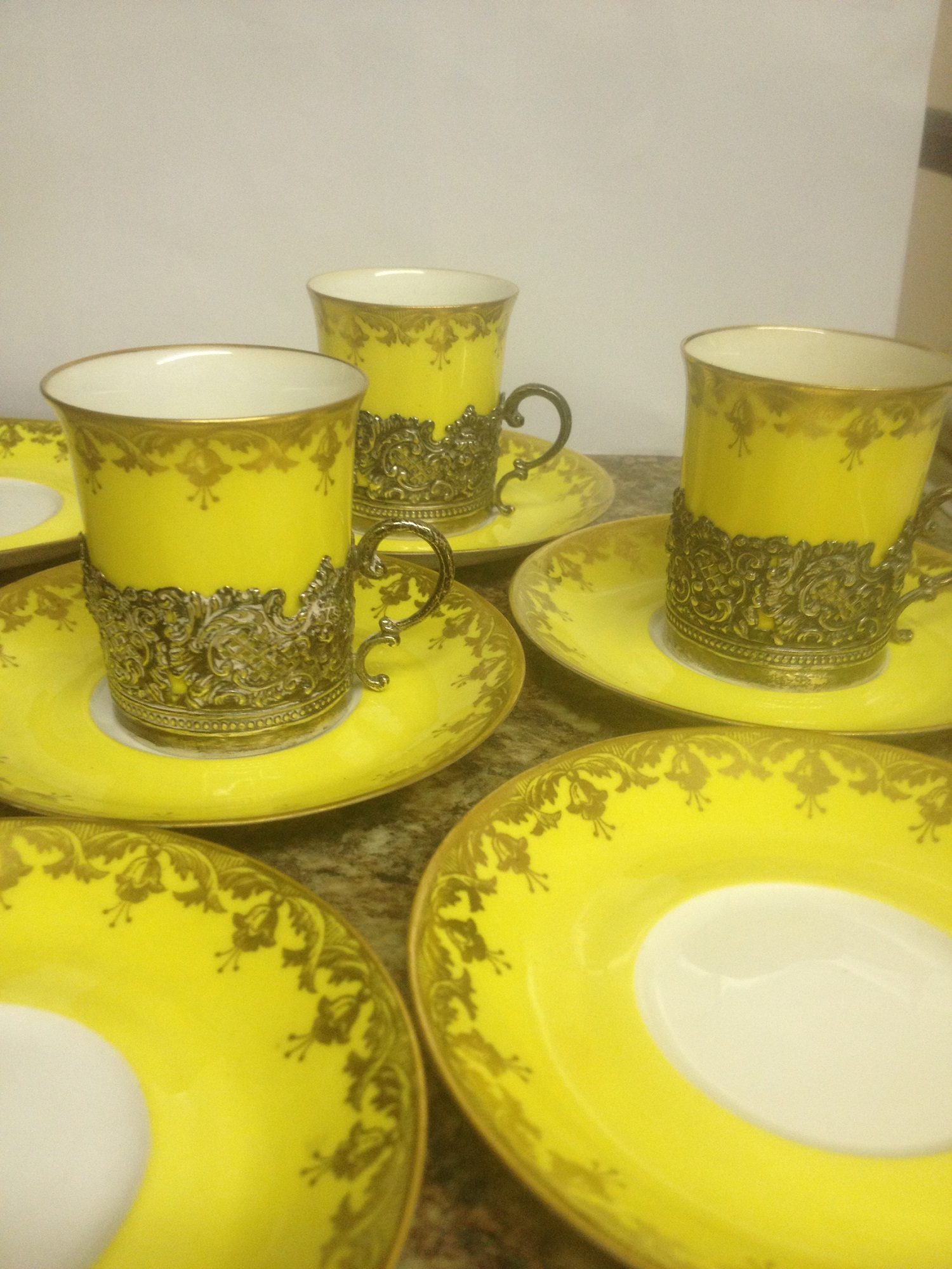 COPELAND SPODE 3X Coffee cans and 6 x saucers 2 of the saucers are damaged the markigs on the bottom of the china reads spode copelands england and has a mark in red saying r631 then under that is a 4 the silver coffee can holders are hallmarked Walker and Hall and dated 1907 chester england id like to know the value of these items before i put them up for sale thankyou for looking