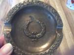 I found this ashtray in a box of things I purchased at an auction in Illinois. It has what appears to be a wreath in the center with leaves sculpted along the edges. It appears to be copper,but I'm not sure. I don't want to clean it for fear of ruining it's value. On the back it has EMA of NY, and Oct 1322 stamped in it.