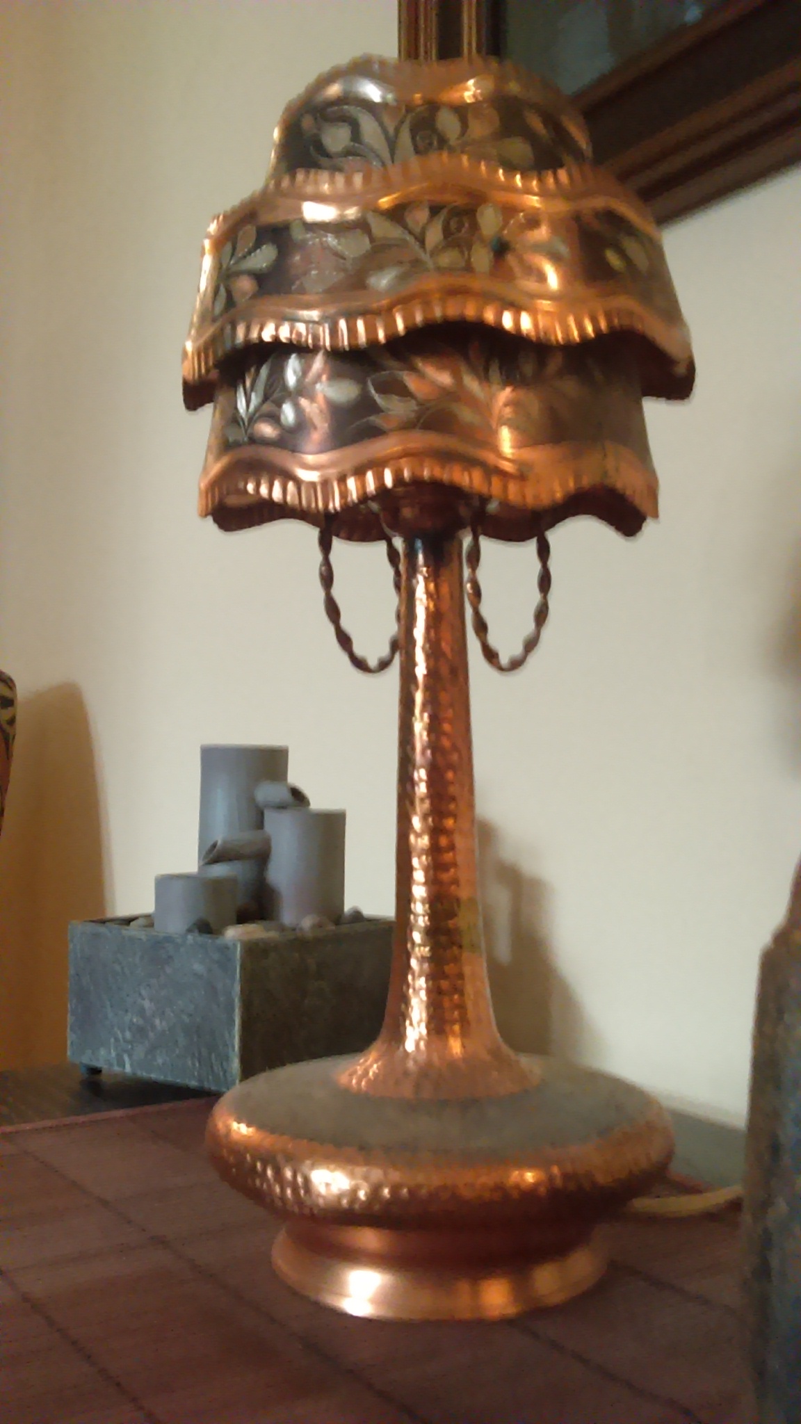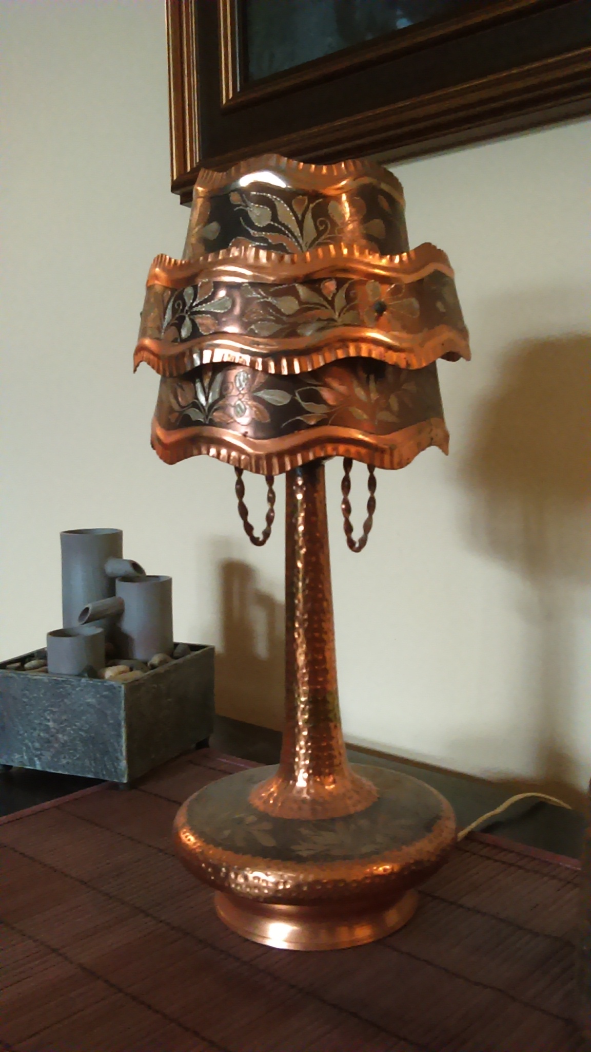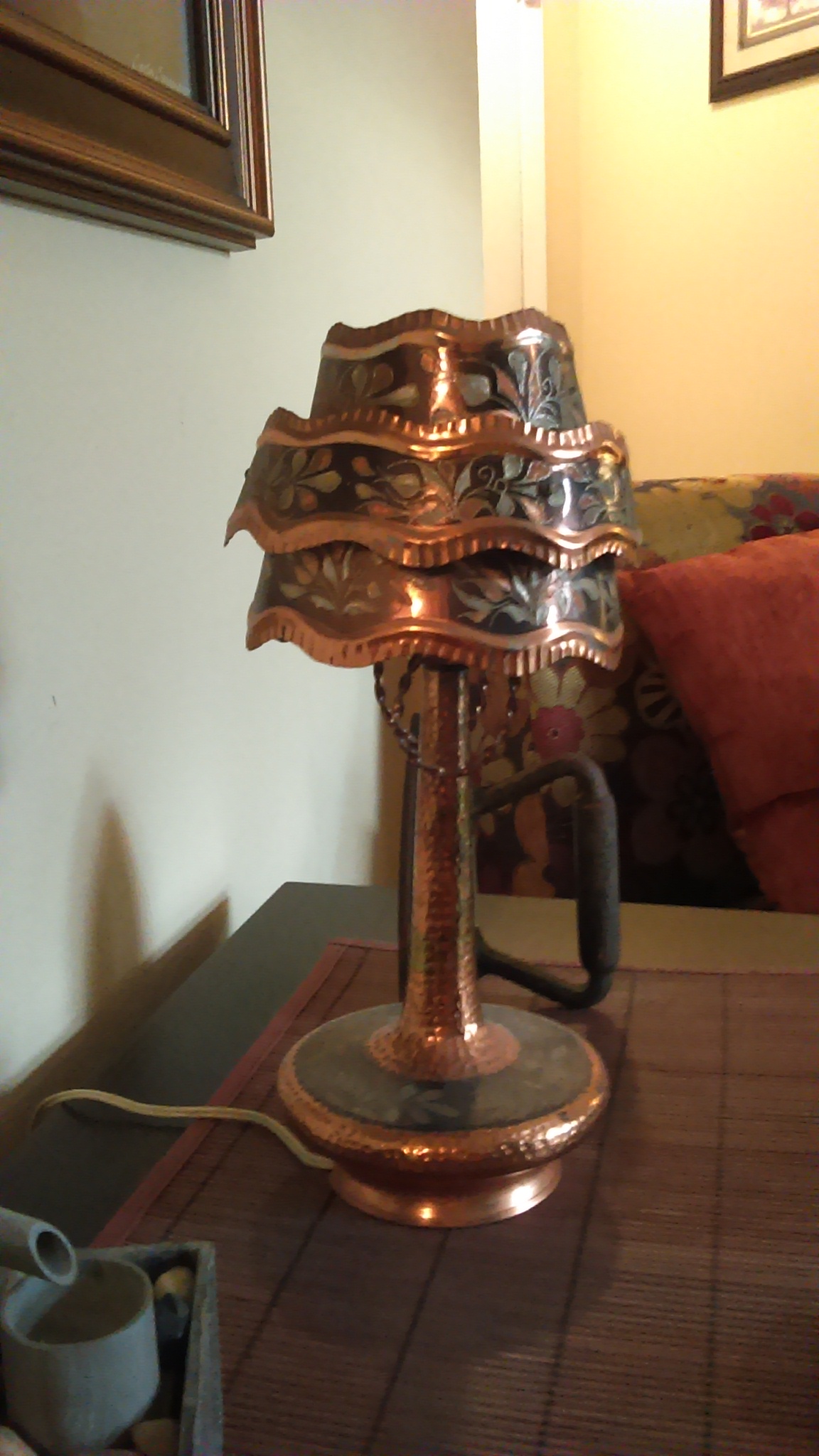 I purchased a copper lamp with 3 tiered copper shade in Finland several years ago.