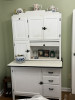 Coppes Napanee kitchen cabinet with a metal bread draw top left. No top shelves.  Two drawers on top right. One large door on bottom. All wood in great shape.