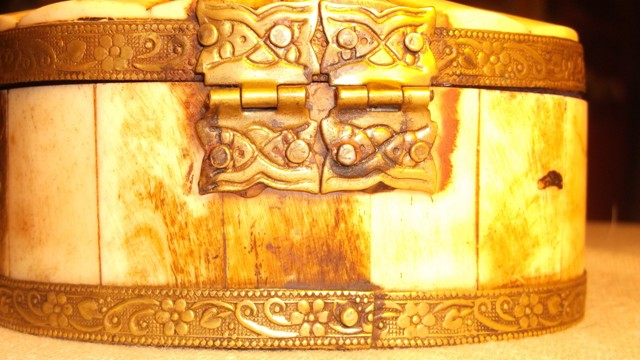 The box and necklace were purchased together from a yard sale. The box is either Ivory or Antler. I was told the necklace was from the 60's or earlier.