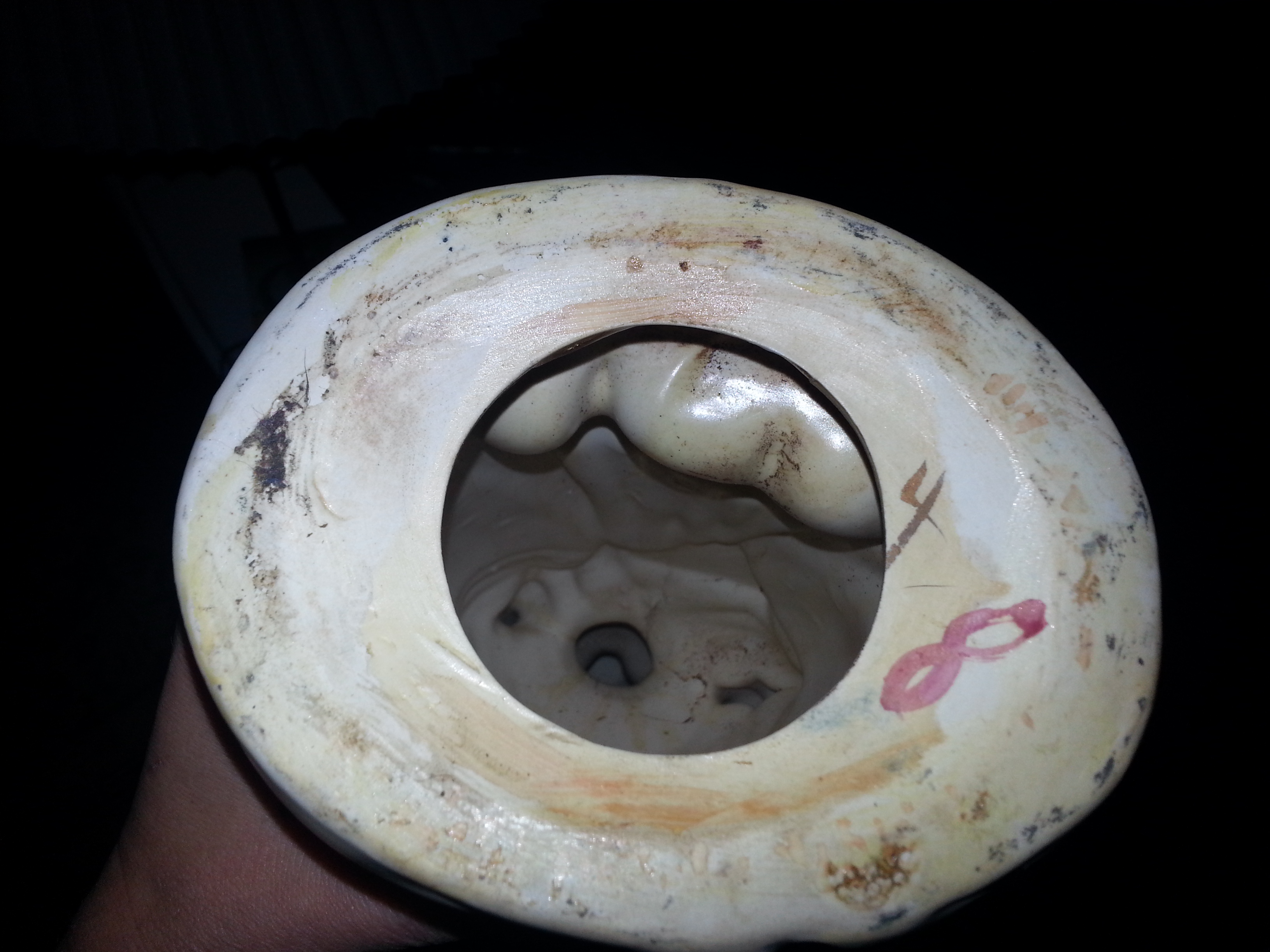 "The Cordey China Company was founded in 1942 in Trenton, New Jersey, by Boleslaw Cybis. The operation was small with less than a dozen workers. They produced figurines, vases, lamps and similar items, much of which was marketed through gift shops both nationwide and abroad. Though the earlier wares were made of plaster, Cybis soon developed his own formula for a porcelain composition which he called "Papka." Cordey figurines and busts were characterized by old-world charm, Rocco scrolls, delicate floral appliques, ruffles and real lace which was dipped in liquified clay to add dimension to the work.