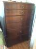 4 piece (2 dressers, nightstand, highboy) bedroom set of Cordovan Mahagony wood. Dovetail drawers in all pieces. Only nightstand has original drawer pull. All other pieces have gold pulls that were put on in 50s. Rolling casters were also put on pieces but can be removed. I can't find a manufacturer name or stamp/style number except for eh "mahagony" stamp on back. Please help me determine value for selling!