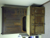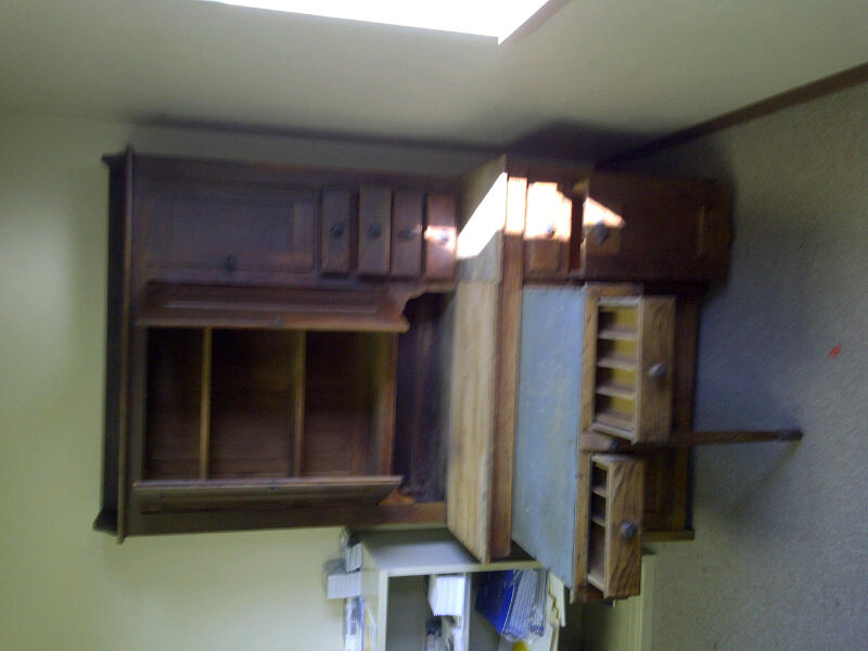 This was a piece I aquired long ago for free. It was not part of their move and the customer did not want it. I have been in the furniture buisness for 26 years and have never seen anything like it before. There is a top cabinet. The desk portion has a unique middle leg that you pull out to reveal another desk top or work space. Covering it appears to be either leather or another heavy material. The top portion of the desk i believed was repaired but further inspection tells me that the top had probably the same material but is now lost to time. This whole unit was on seven casters which i still have. Anybody have any ideas? Please help.