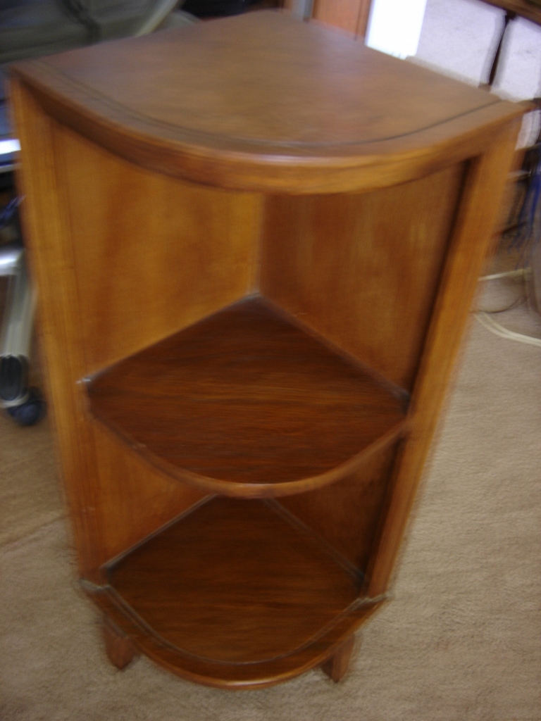 It fits in a corner like a figurine table . It is wood and I am not sure what kind