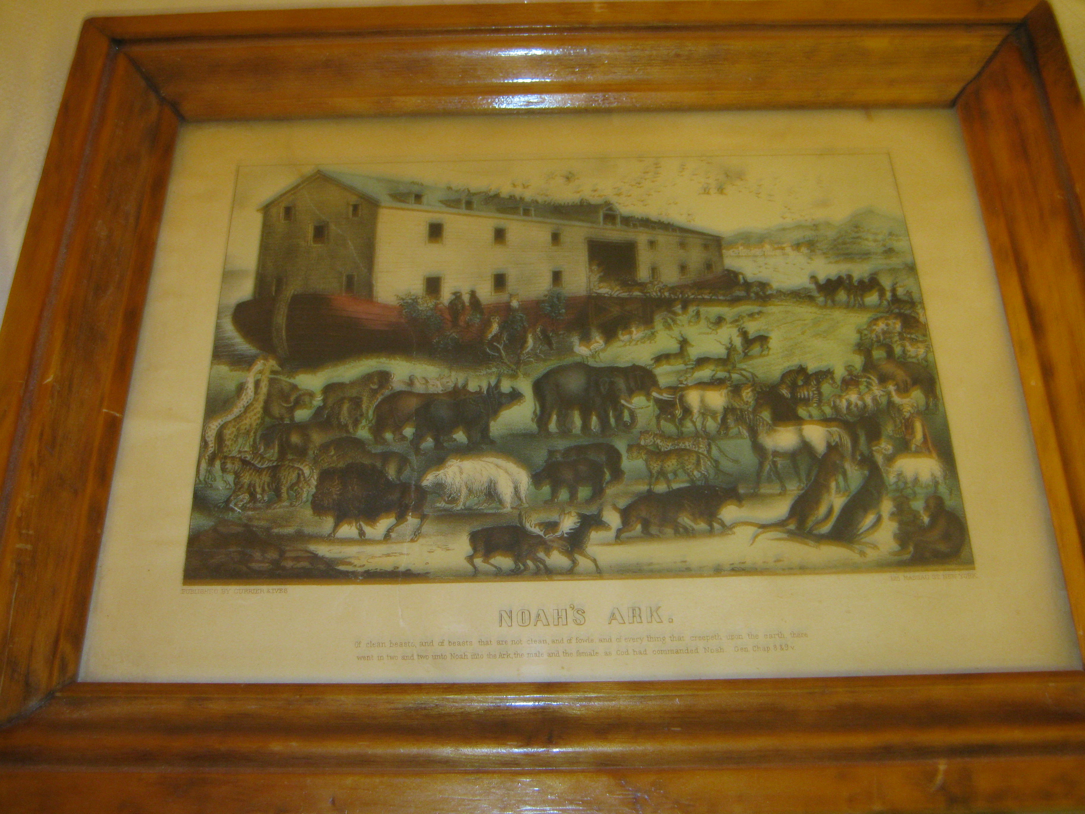 Hi, This print was given to me by my grandpa 37 years ago just before he passed away in 1975. He was 86 years old and he had told me that he learned to count on this picture when he was 4 or 5. He had no idea where his family got it from or how long they had had it but he remembers always seeing it in their home. It is in fair condition. It had a wrinkle in it that was smoothed out and is tatered around on edge. It has been in the frame it is in for as long as I can remember and I am 61. I have a picture to send you although it is not a great picture it will give you an idea of what it is. Thankyou for you time. Elaine Gartner.