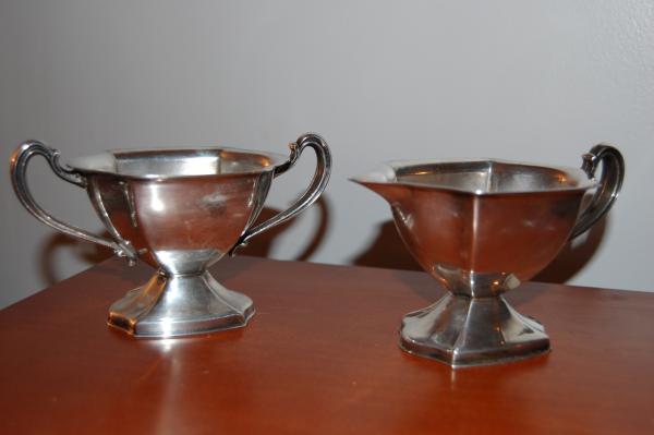6inx6in tray, 4 in creamer, 4 in sugar bowl