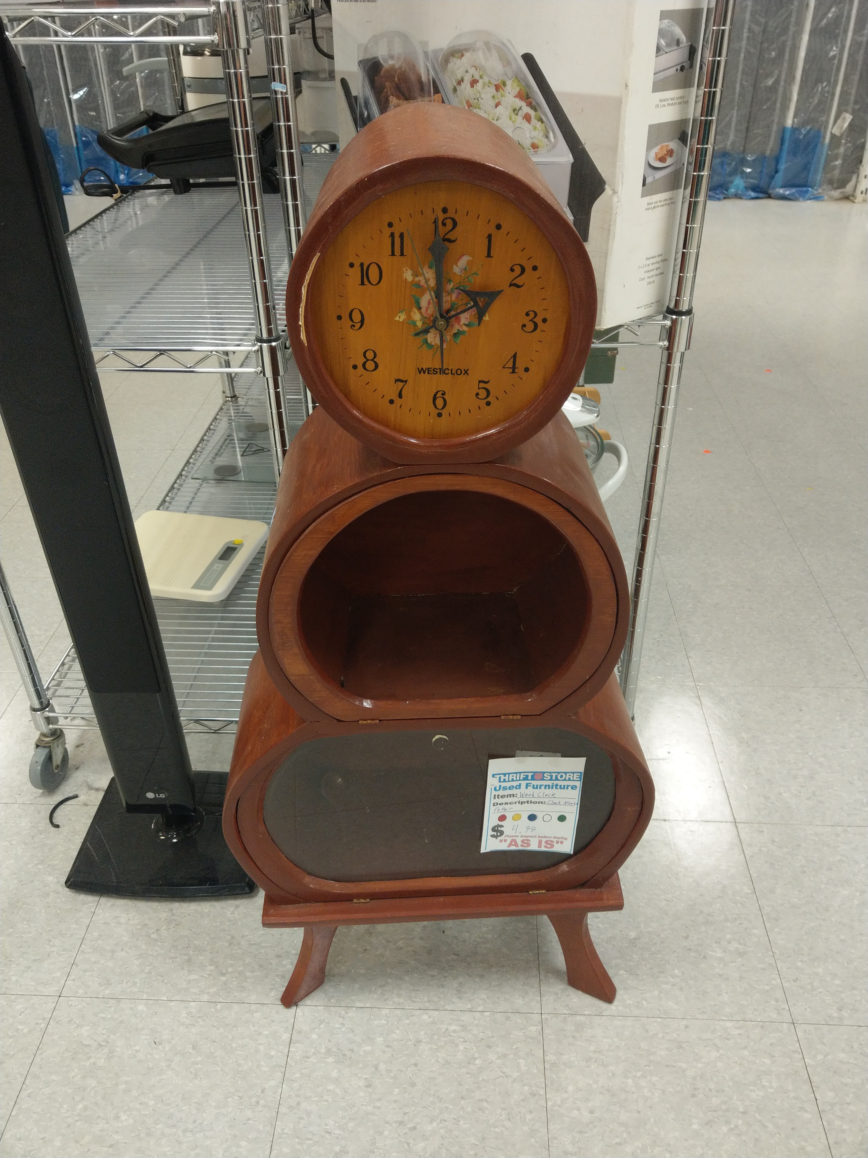 I've tried a few internet searches to find out anything about this clock and came up empty handed. It looks like a home job, the clock face has hand painted flowers and no other label except "Westclox". The back of the clock mechanism says "Ingraham certified, model 39" and its electric (white plastic, 2 pronged plug). The unit stands 38.5" tall and is 9" thick.