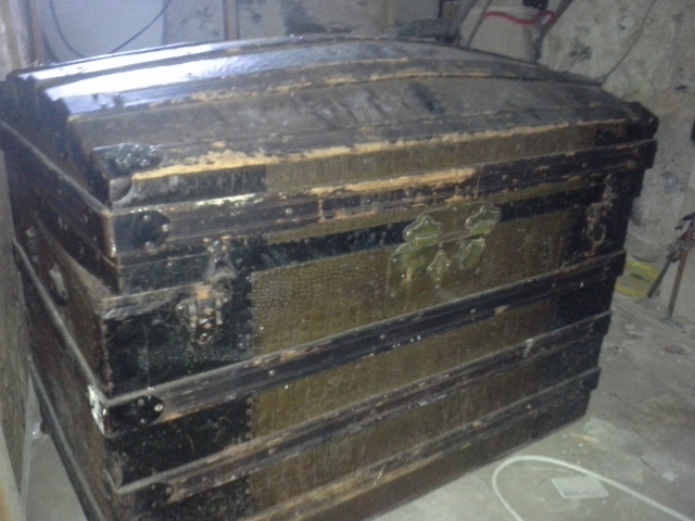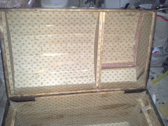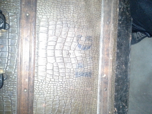 This trunk has wooden in lays and what seems like croc skin on the sides. It is in somewhat rough shape but can definitely be restored. I would like to know more about it. The only markings include a p and either a g or c. Thanks