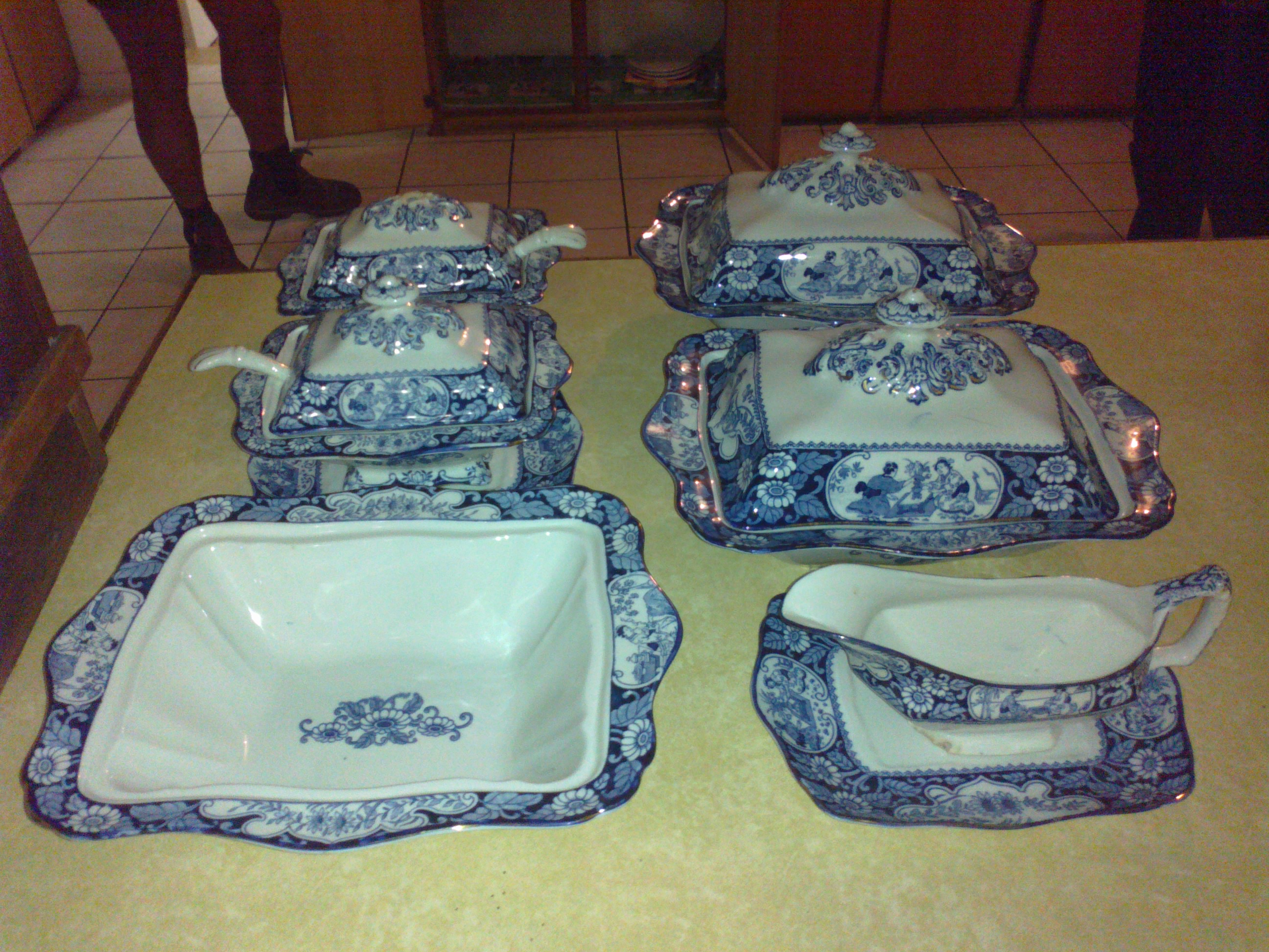 This is a set of buddha crockery made by wood&sons England and came to South Africa with the 1820 settlers.The stamp on the crockery is Woods 510.Photo's attached