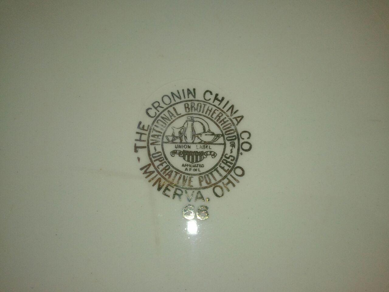 This piece is a serving platter made by The Cronin China Company Minerva Ohio