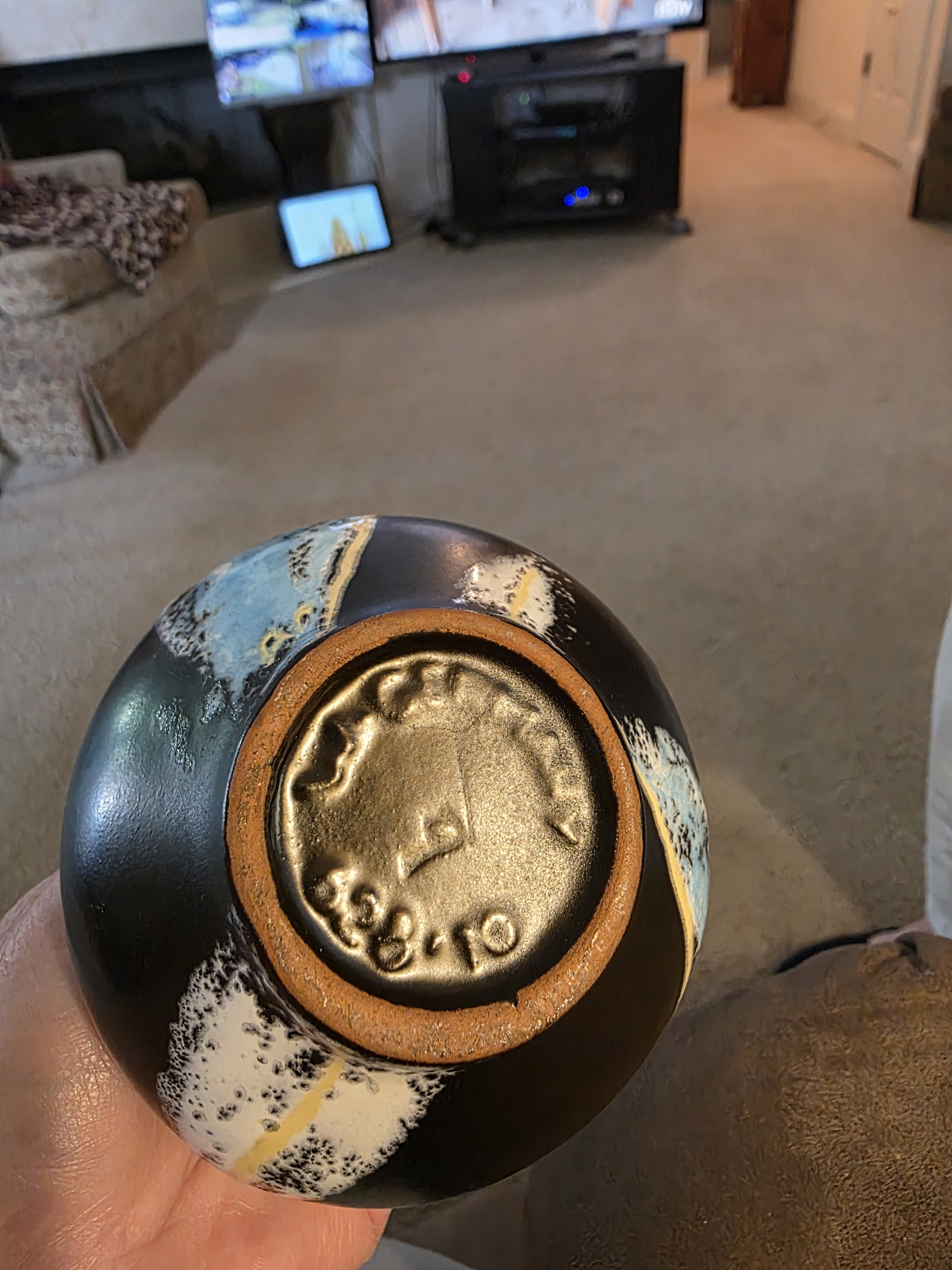 - Close-up of the maker's mark on the base.