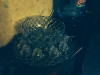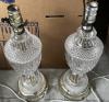 copper/bronze framework with 6 candle lights and crystal overhangs.