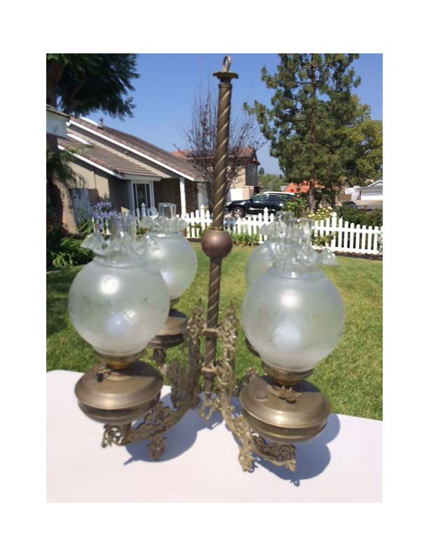 We don't know much about this beautiful chandelier, but it is long, very unique and the crystals appear to be hand-tied onto the chandelier.