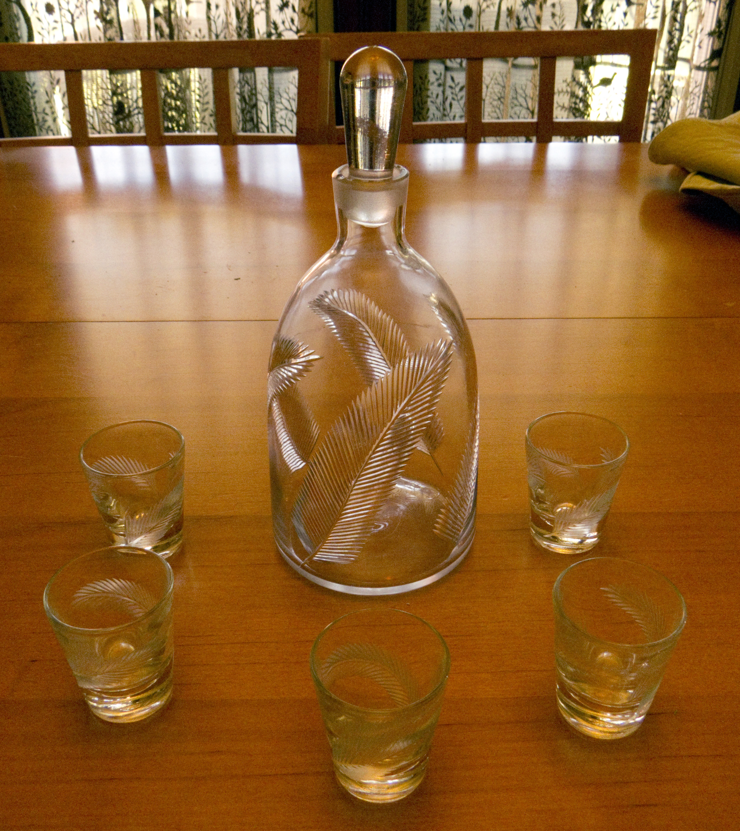Decanter 4" diameter, 9" high, glasses shot size