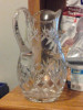 crystal pitcher with gold around top and around circle star patterns with red between the star points