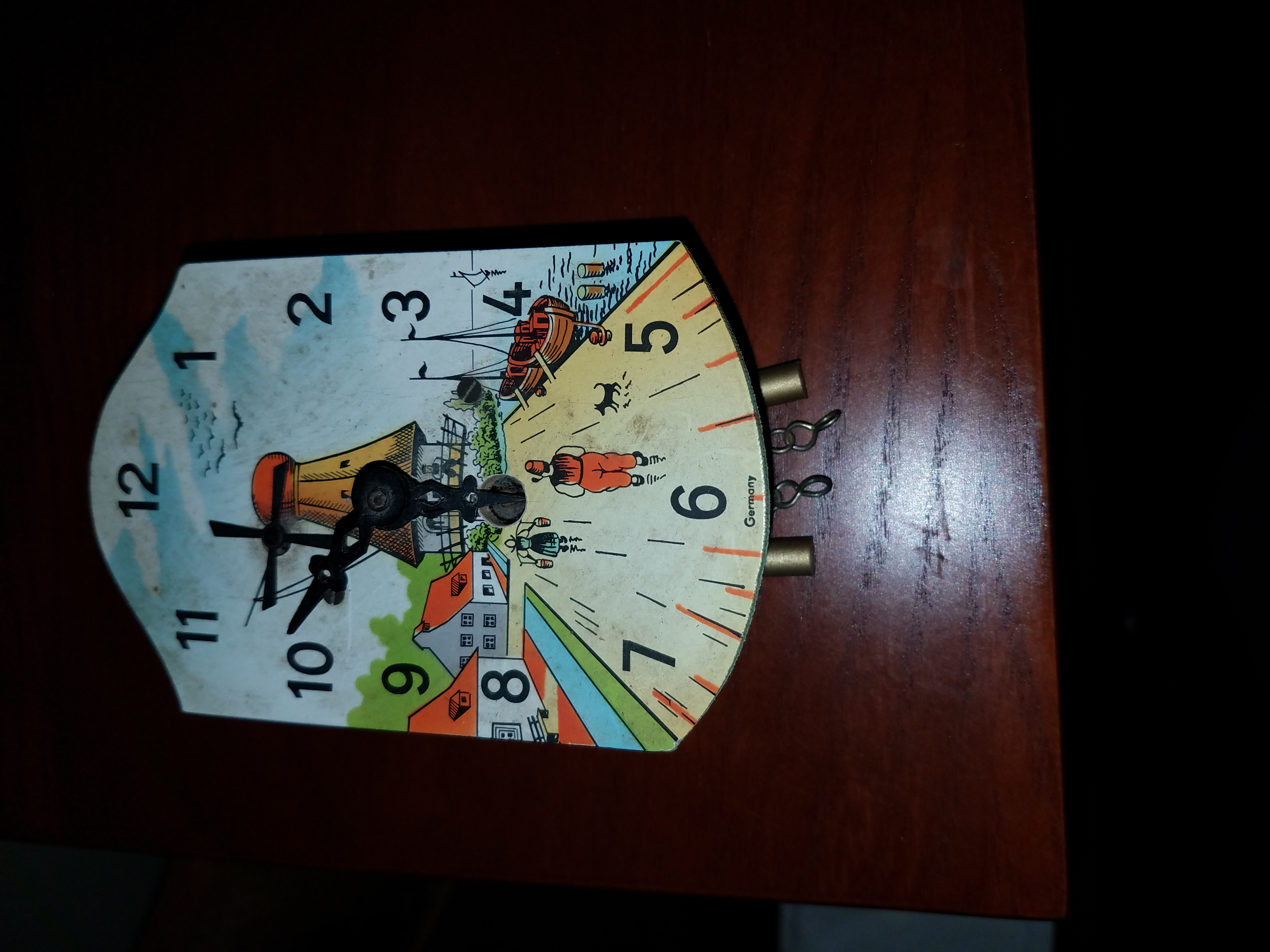German made wind up cuckoo clock found in our storage. Has a windmill design.