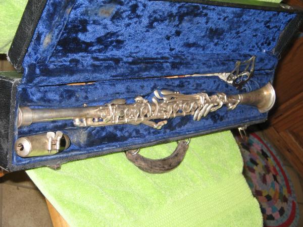 This clarinet was given to me and am just looking for a value. It is a Cundy Bettoney silver colored clarinet with a serial number of H6389 stamped on the back. It comes complete with a case. An aunt used it in school band somewhere in the late 50's and/or early 60's. It has 3 stars and the words Three Star, REG US PAT. CFF., Made in U.S.A., C B Co., on the bottom of the instrument.