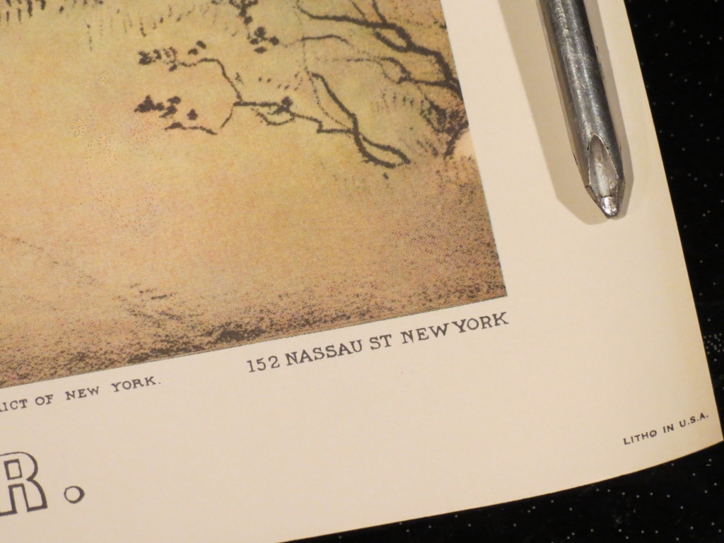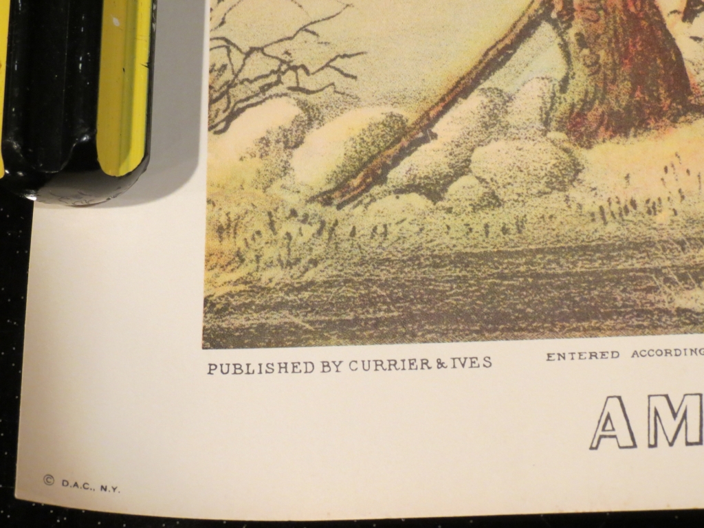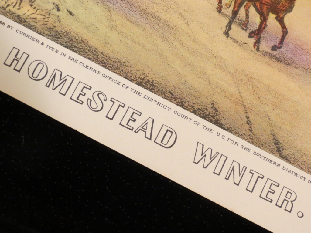 We have a set of four lithographs, one for each season of the Currier & Ives American Homestead series. We have compared the writing across the bottom to several reprints vs. ones that are claimed to be originals from a variety of online sources. The print on ours matches that of the ones that claim to be original, and this print is different/more than that of the reprints that we have found.