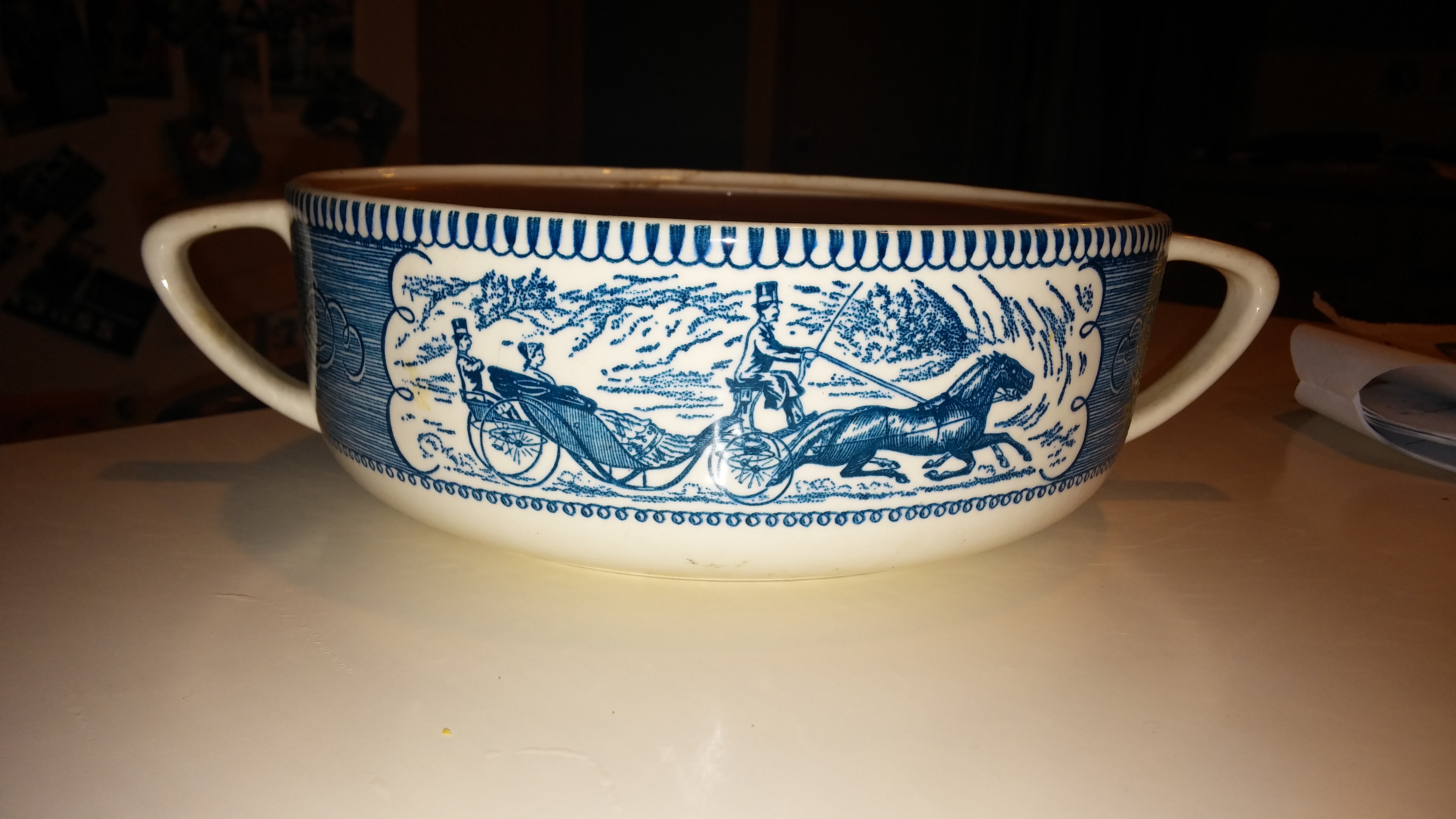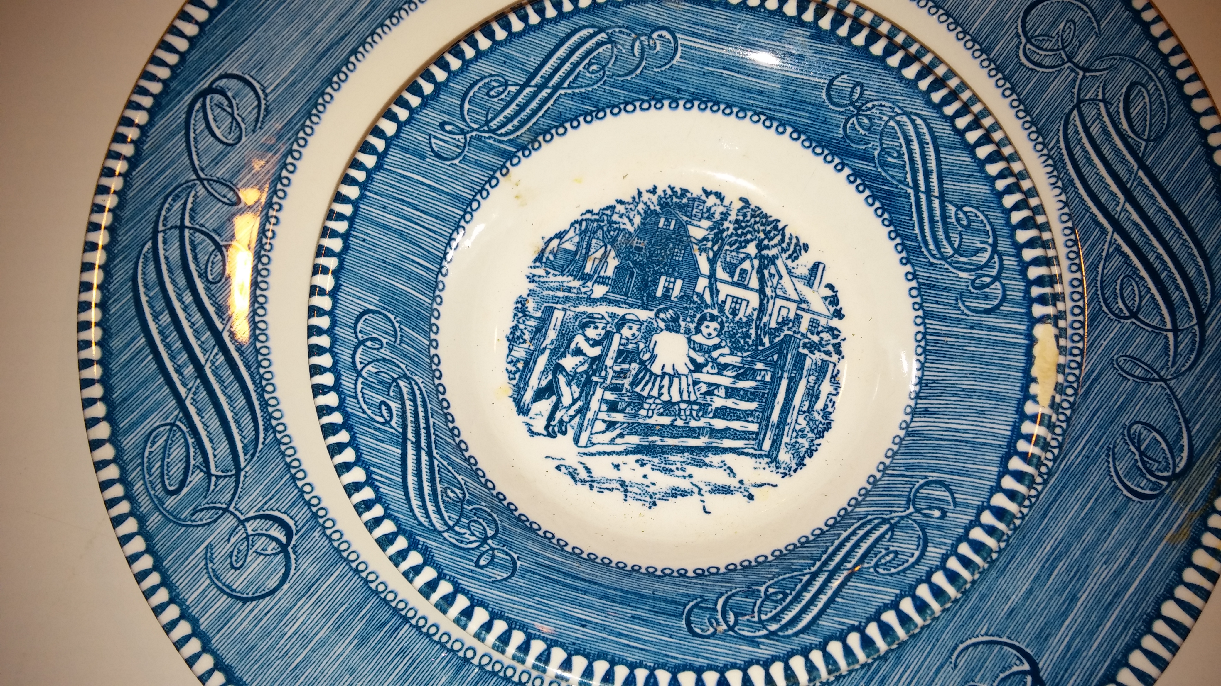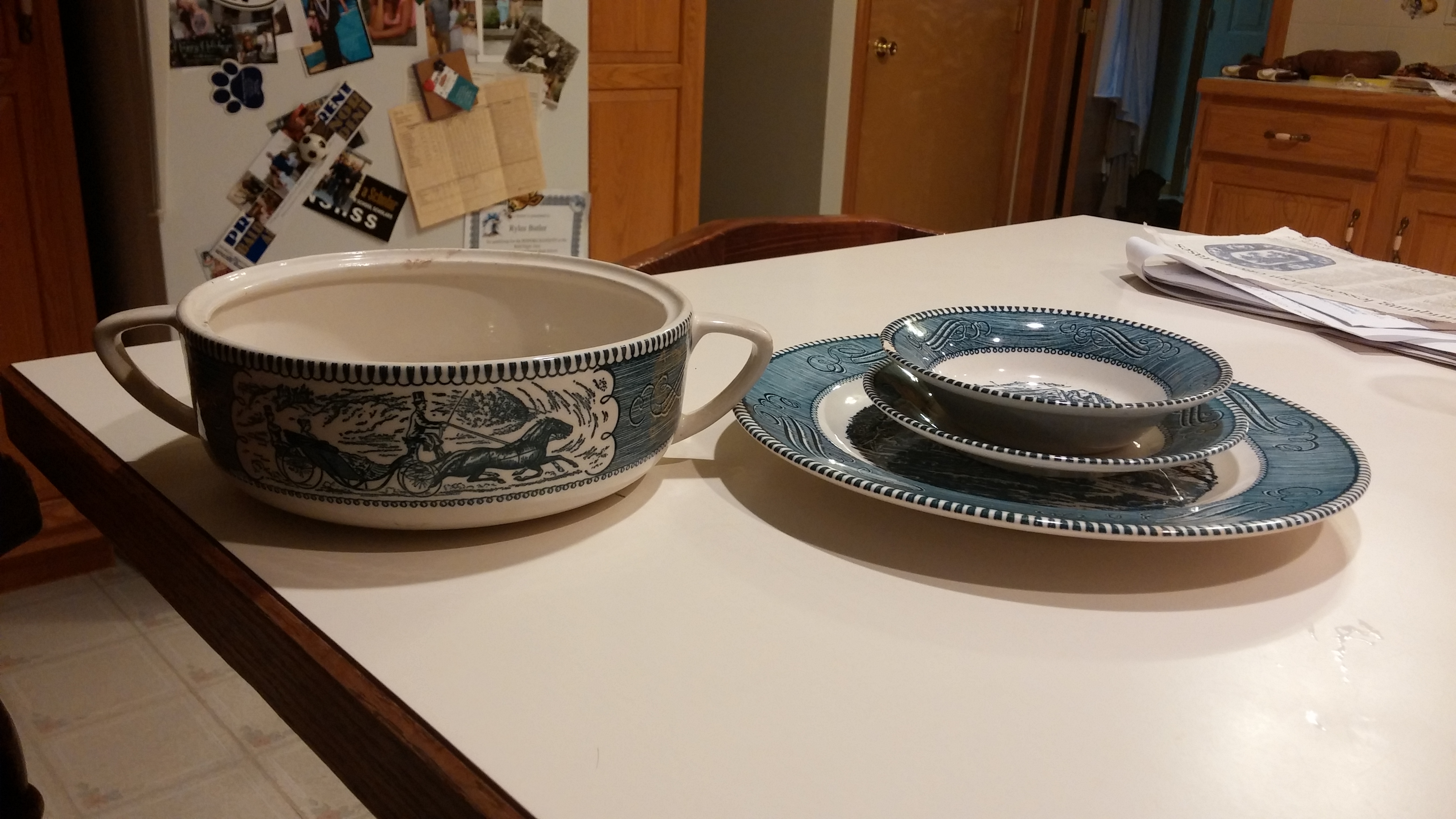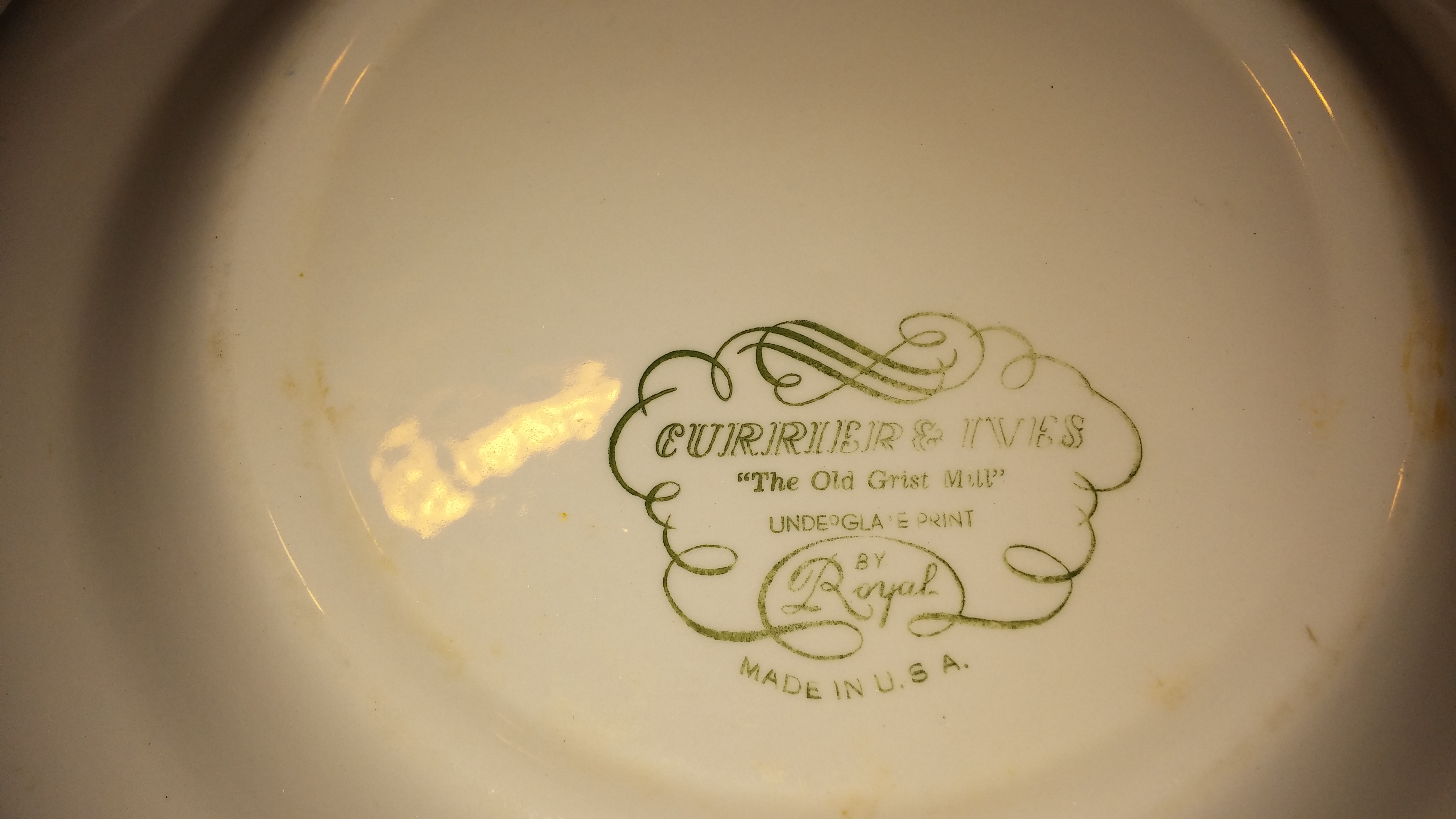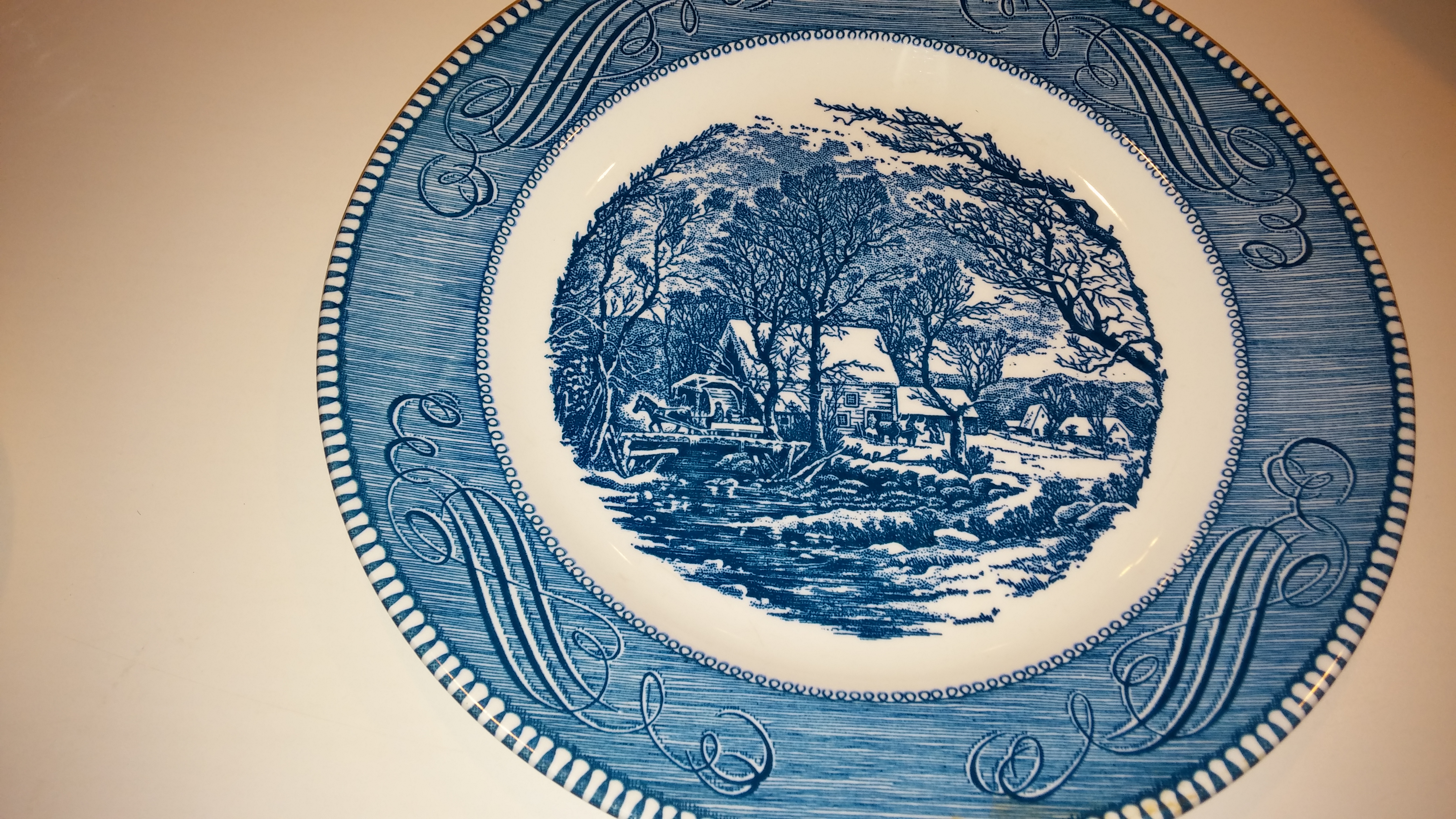 Royal China Underglazed "Currier & Ives" set of plates, saucers, and bowls made in the USA. These are in perfect condition.