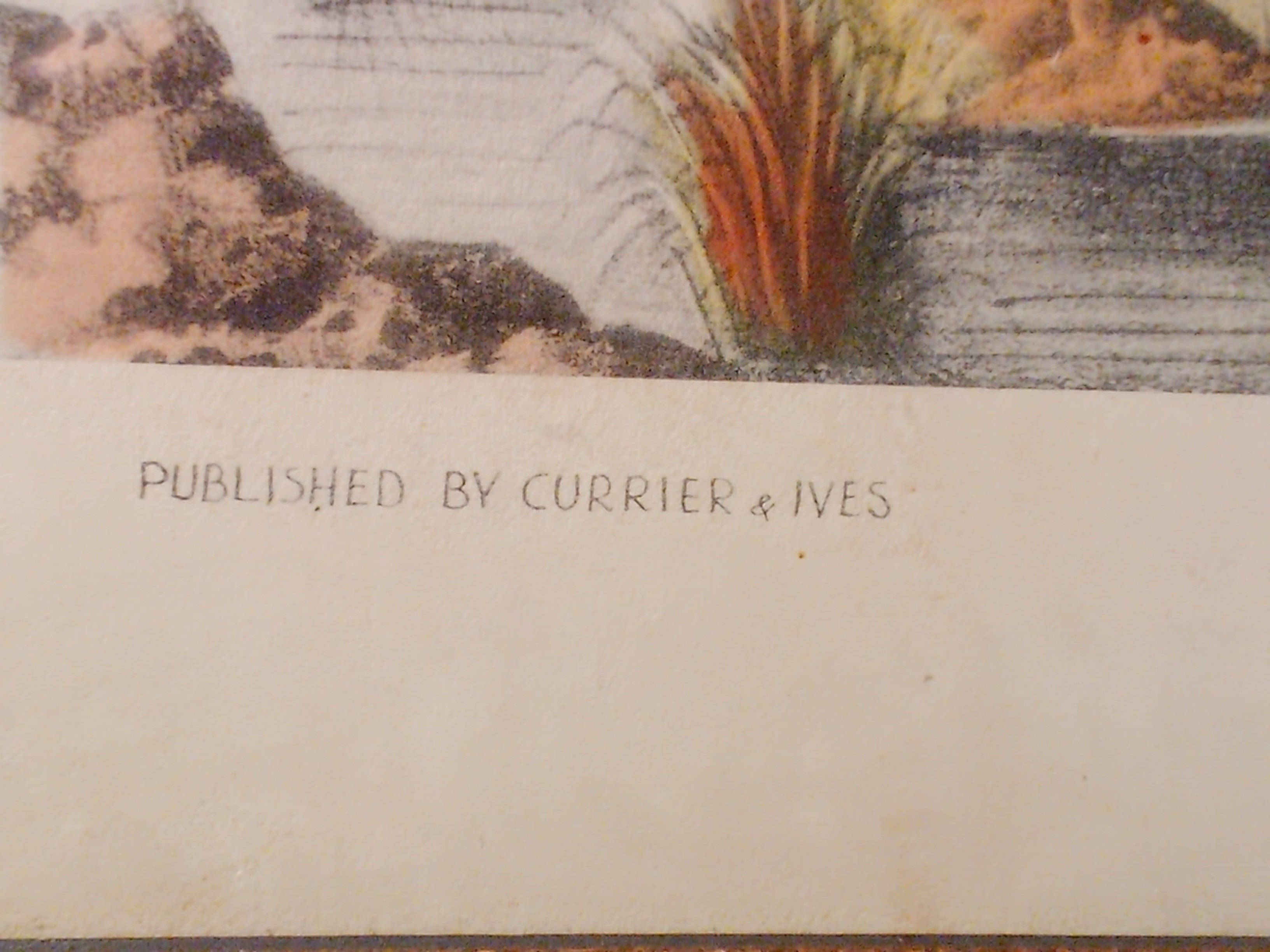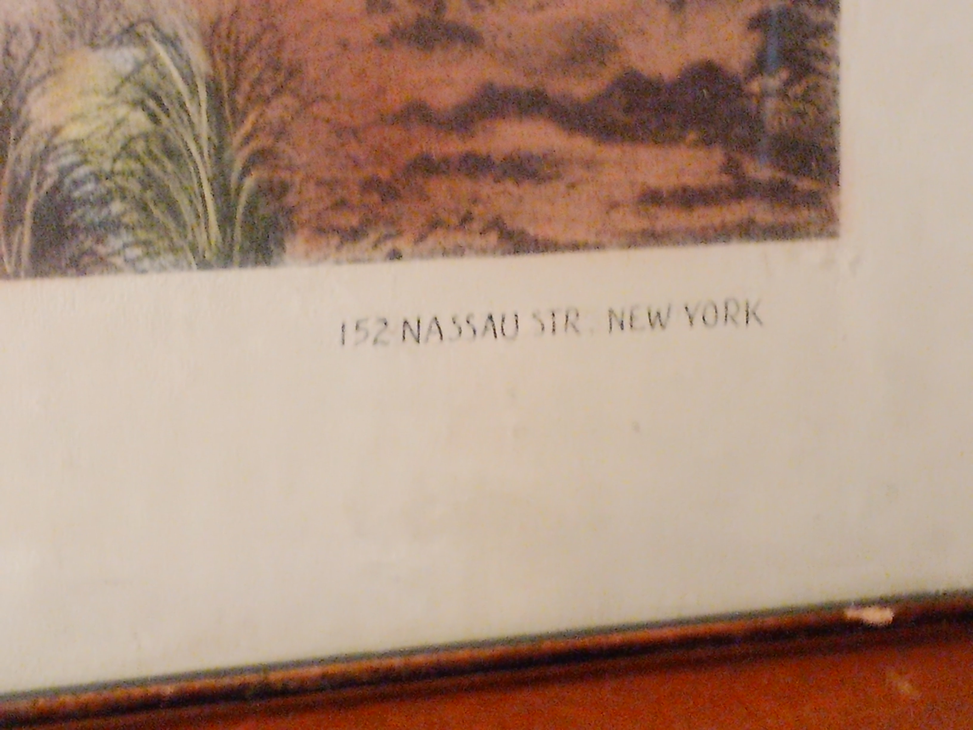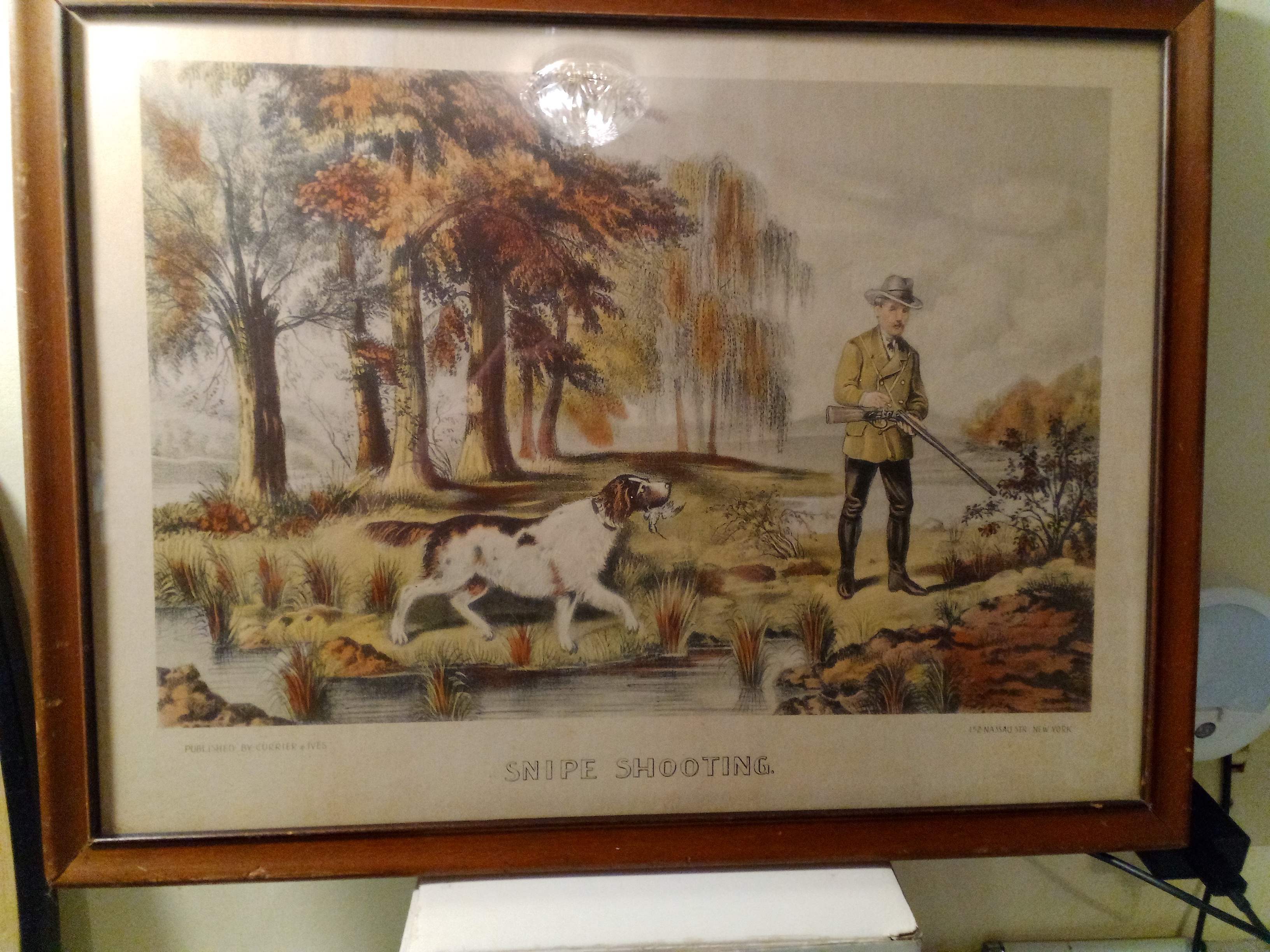 The print itself is 9 1/2" inches tall and 14" wide. Simple wood frame, no idea if it's period.