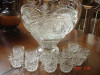 This punchbowl set has been in may family a long time. I am curious about the age, pattern, and general information about the set. Oh, and naturally its value. It has 11 cups (one has a crack and one has a chip with a crack), 13 "S" hooks, pedestal and bowl.