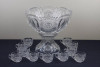 This set is similar to another set listed on this site - somewhat different design. Very heavy bowl, cups and base, with deep etching. "New York" is stamped on the back with a few other words that I can't decipher in the photo. no pic of cups at this time.