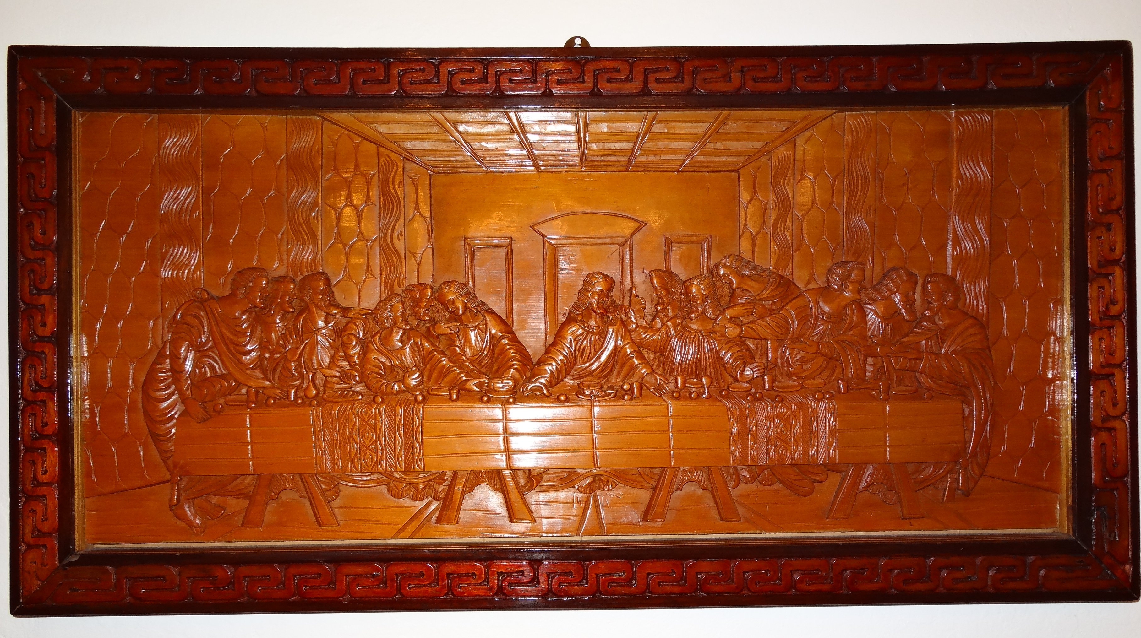 I'd love to know the value of this Da Vinci's Last Supper Engraved on Wood! My Dad was in the Navy and brought this home from either the Philippines or Japan (we think). There are no markings on the back or front. The edge of the carving is a tight "S" squiggle. I have no idea what types of wood were used to carve this.