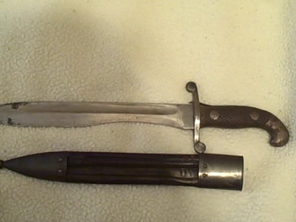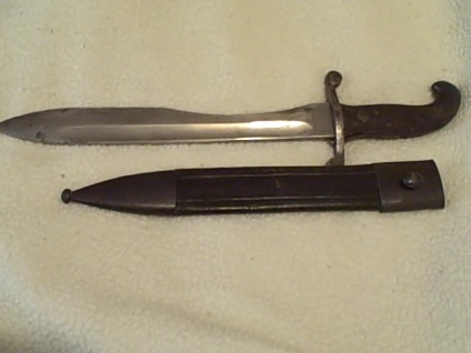 This item is a one edged dagger that appears to have been from the civil war era. At the hilt, on one side is a crown with cross cannons under it and the words ARTILLERIA FAB under the symbol. On the other side it has the number 24735. It is in it's original sheath and has a latch to secure it. The overall length is 17 inches, the blade is 12 inches.