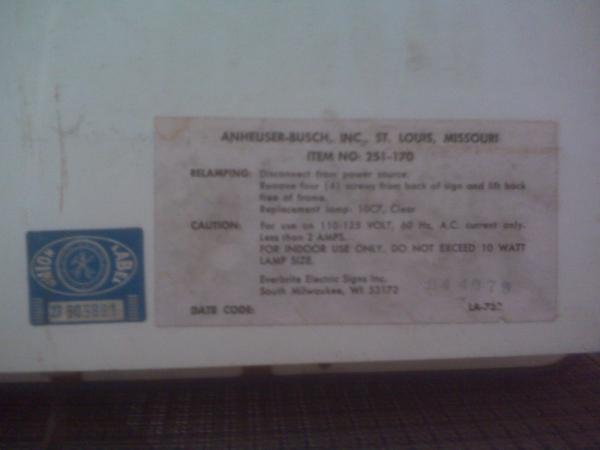 Anheuser-Busch, Inc. St. Louis, Missouri Item # 251-170 on back and Item # 231-270 '80 on front