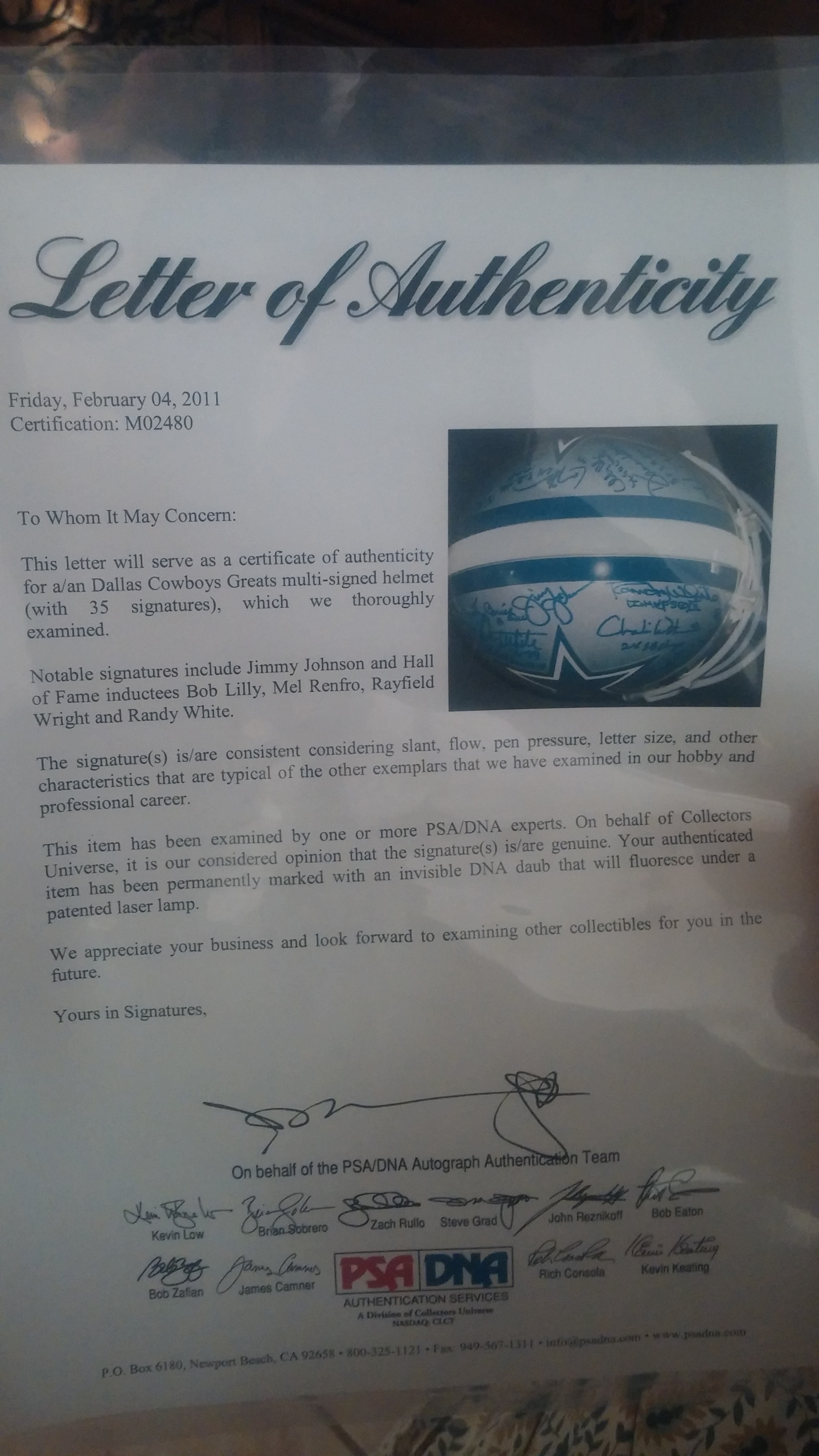 Authentic Dallas Cowboys Helmet with 35 signature's from player's of the 80s and 90s.