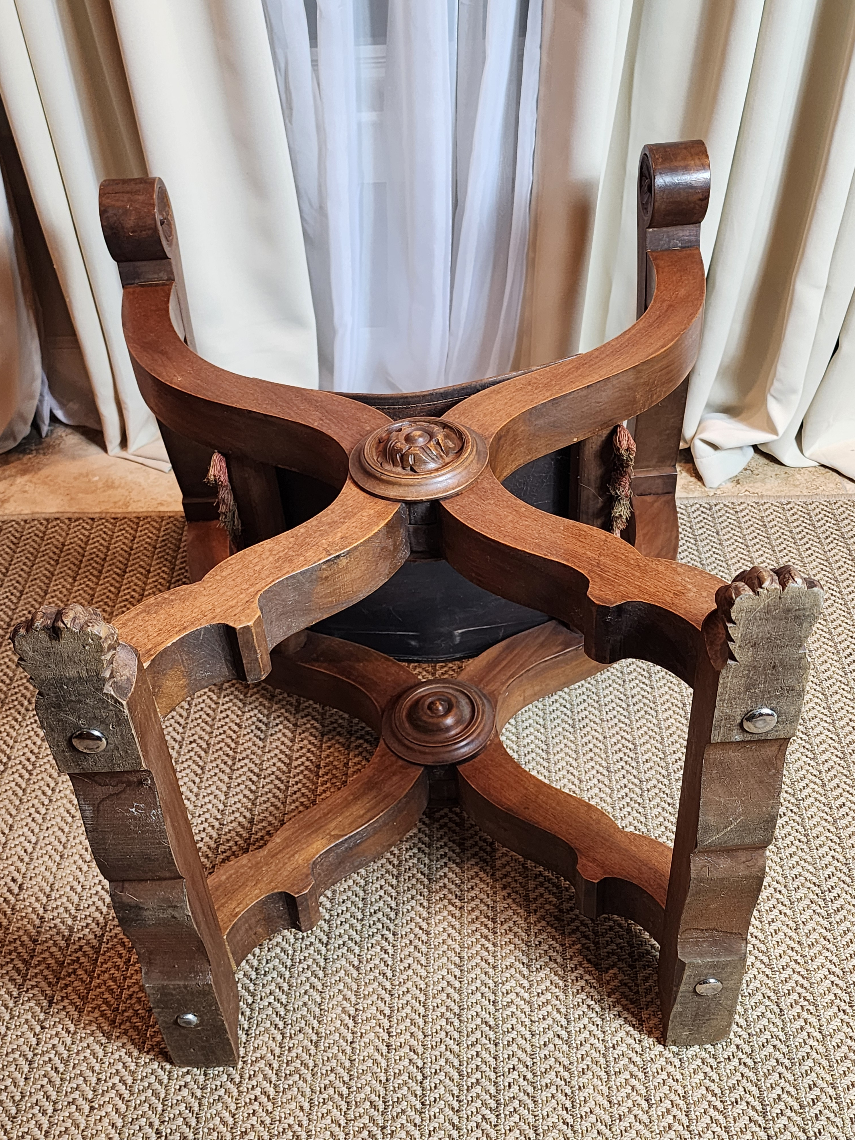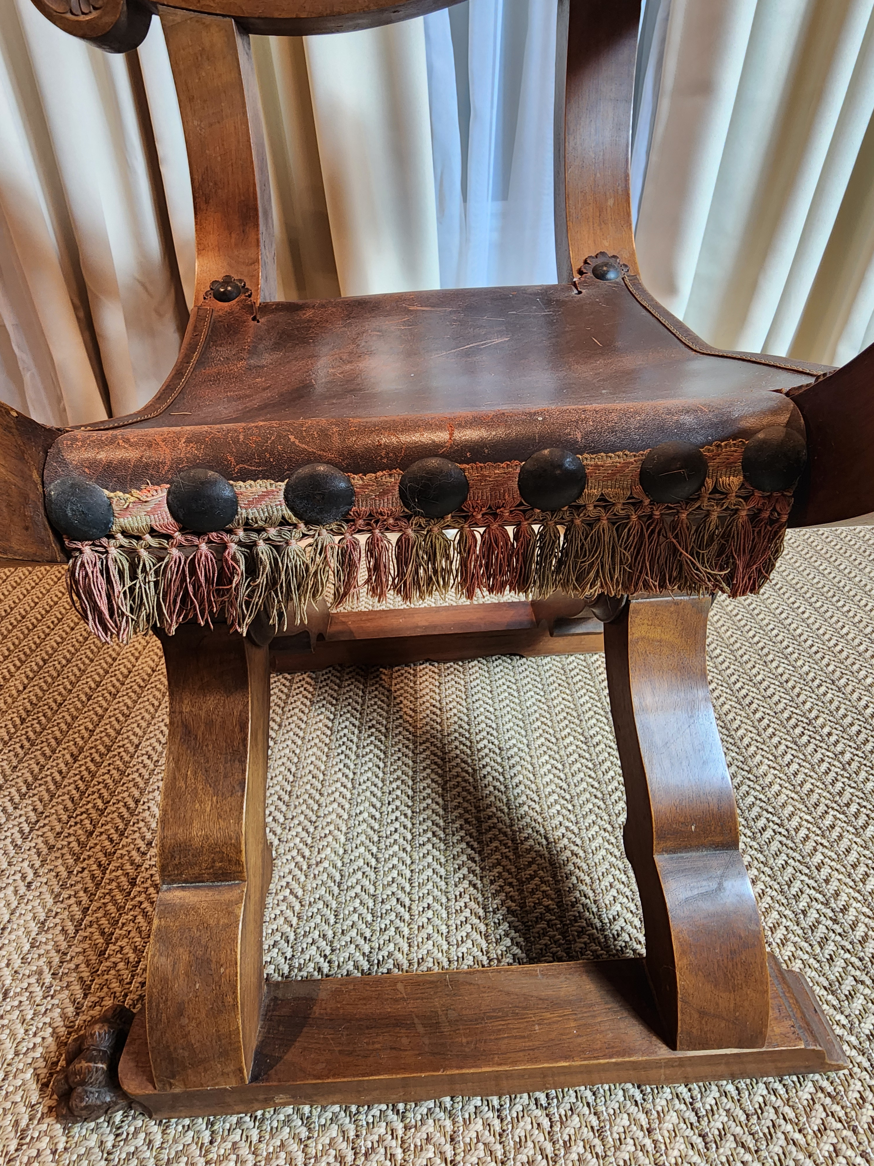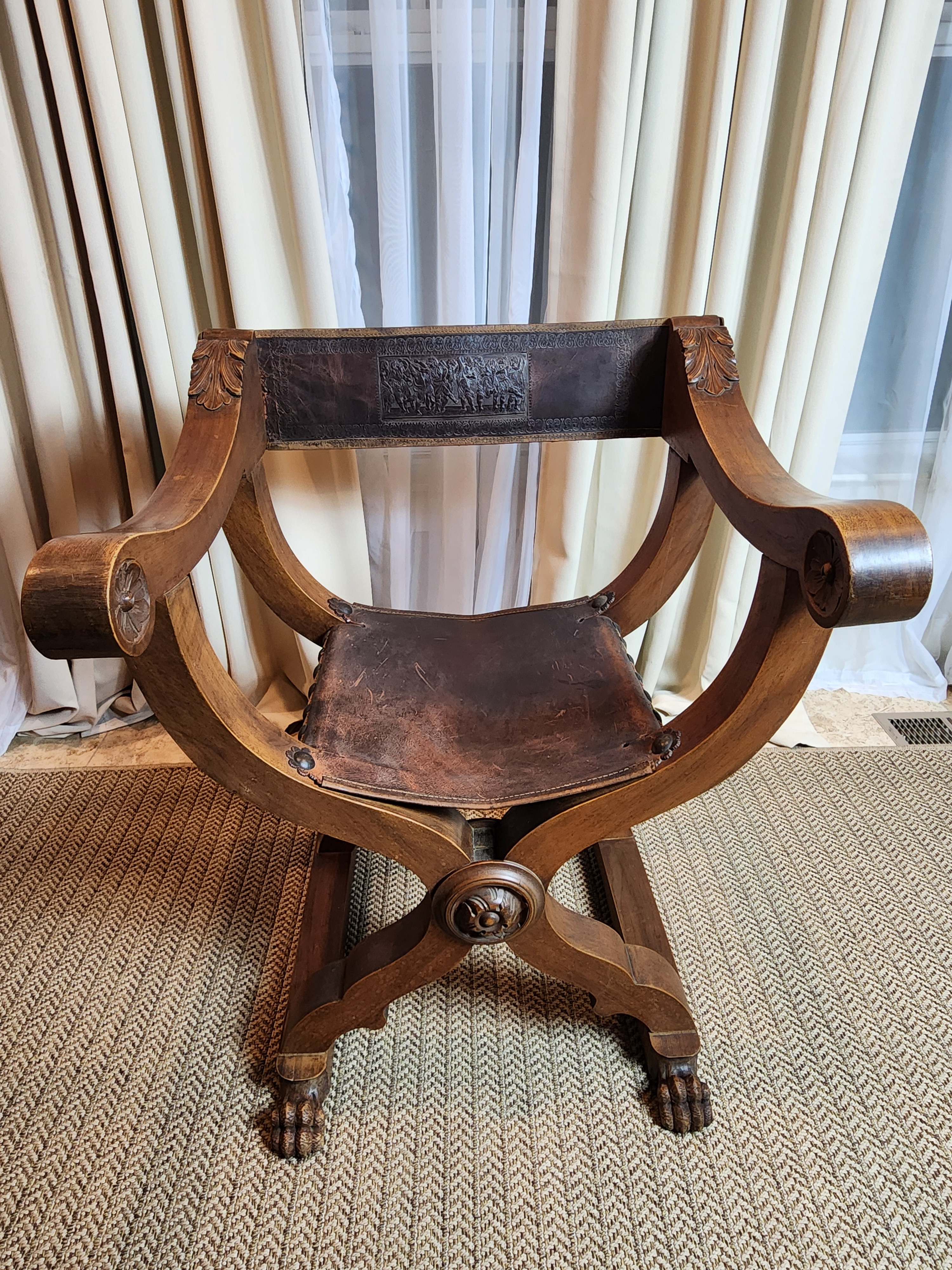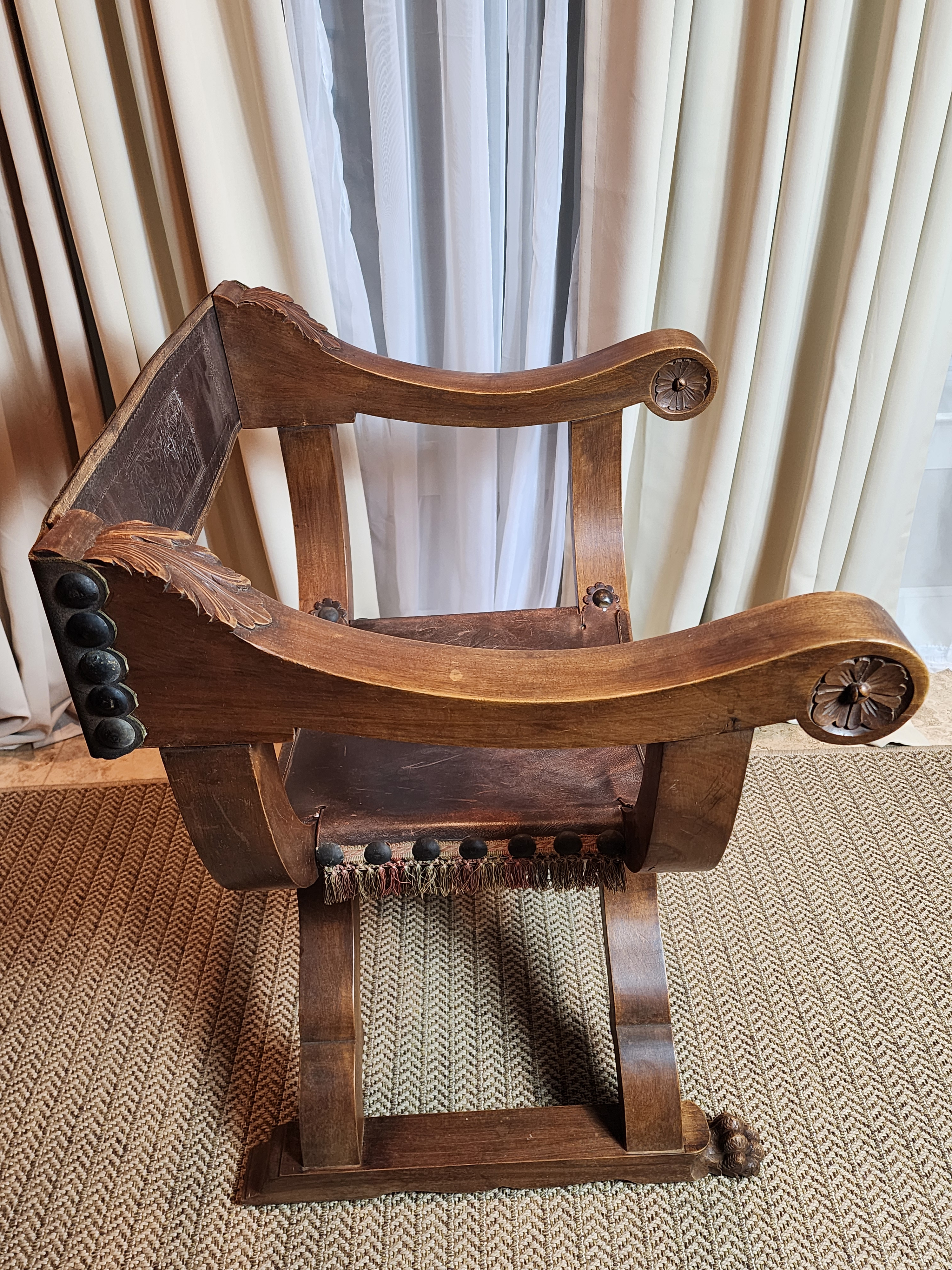 Description Dante Leather & Wood Chair 33.5" tall, 26" wide, 22" deep