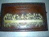 29.5" wide x 21" high wall hanging of DaVinci's Last Supper in 3-D Bas Relief with silver and brass/copper tones in an ornate gilded oak frame. Made in Spain stamped in the lower left corner