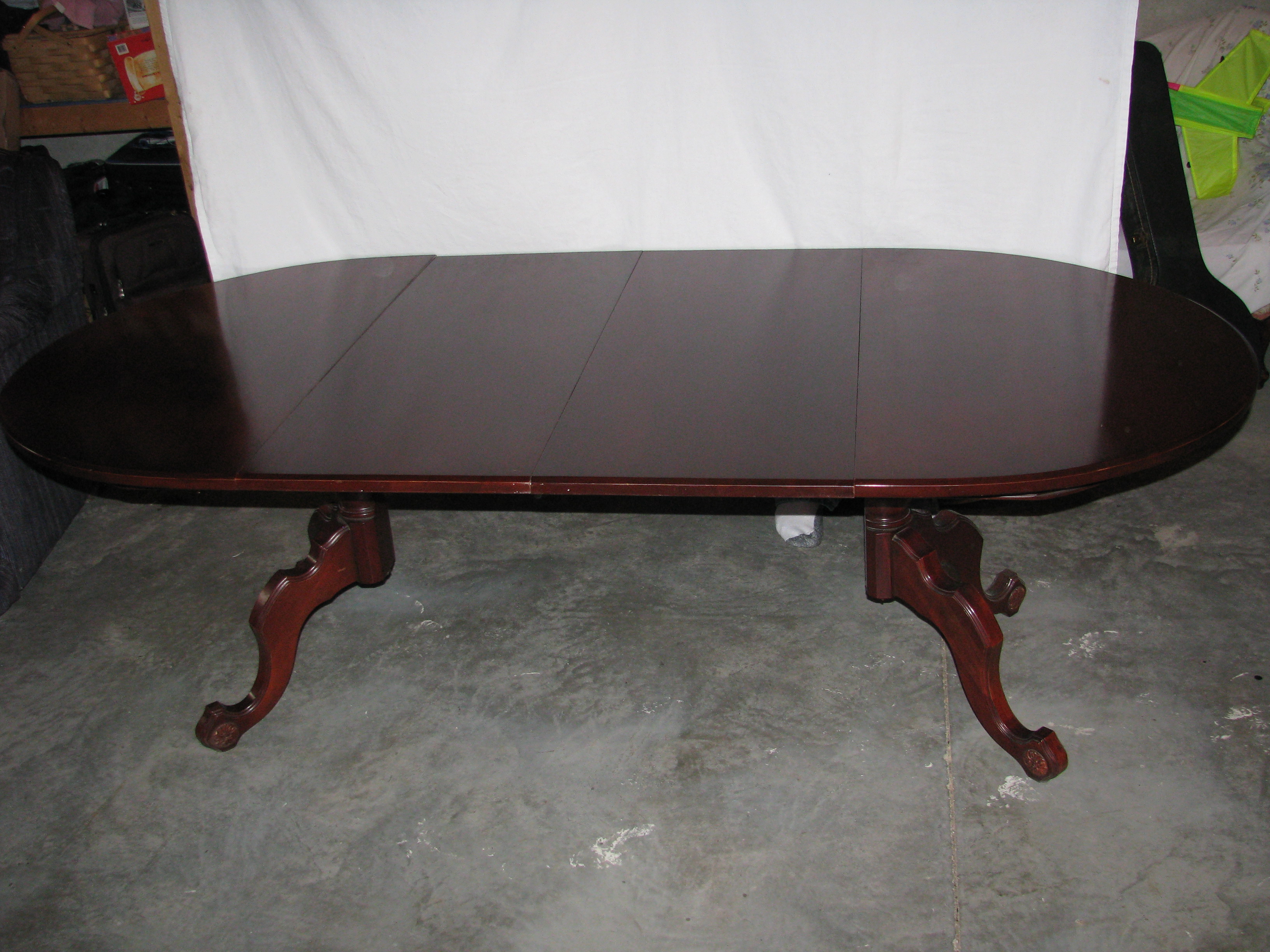 I have a solid cherry dining table and chairs made by Davis Cabinet Company. It was purchased in 1954 by my grandmother and was very well taken care of. The upholstry on the chairs is great with no holes or stains, but the pads underneath probably need replacing. The table has a custom cover that was rarely removed so the top is in great condition. It measures 52" across, and has two 18" leaves to go with it. Some of the wooden pegs that you use to align the leaves have broken off. There are 5 chairs and one captains or "arm" chair. There are a few small scuff marks on some of the legs of the chairs, and a few around the table edge, but the whole set is in great condition. I am just wondering what it is worth?