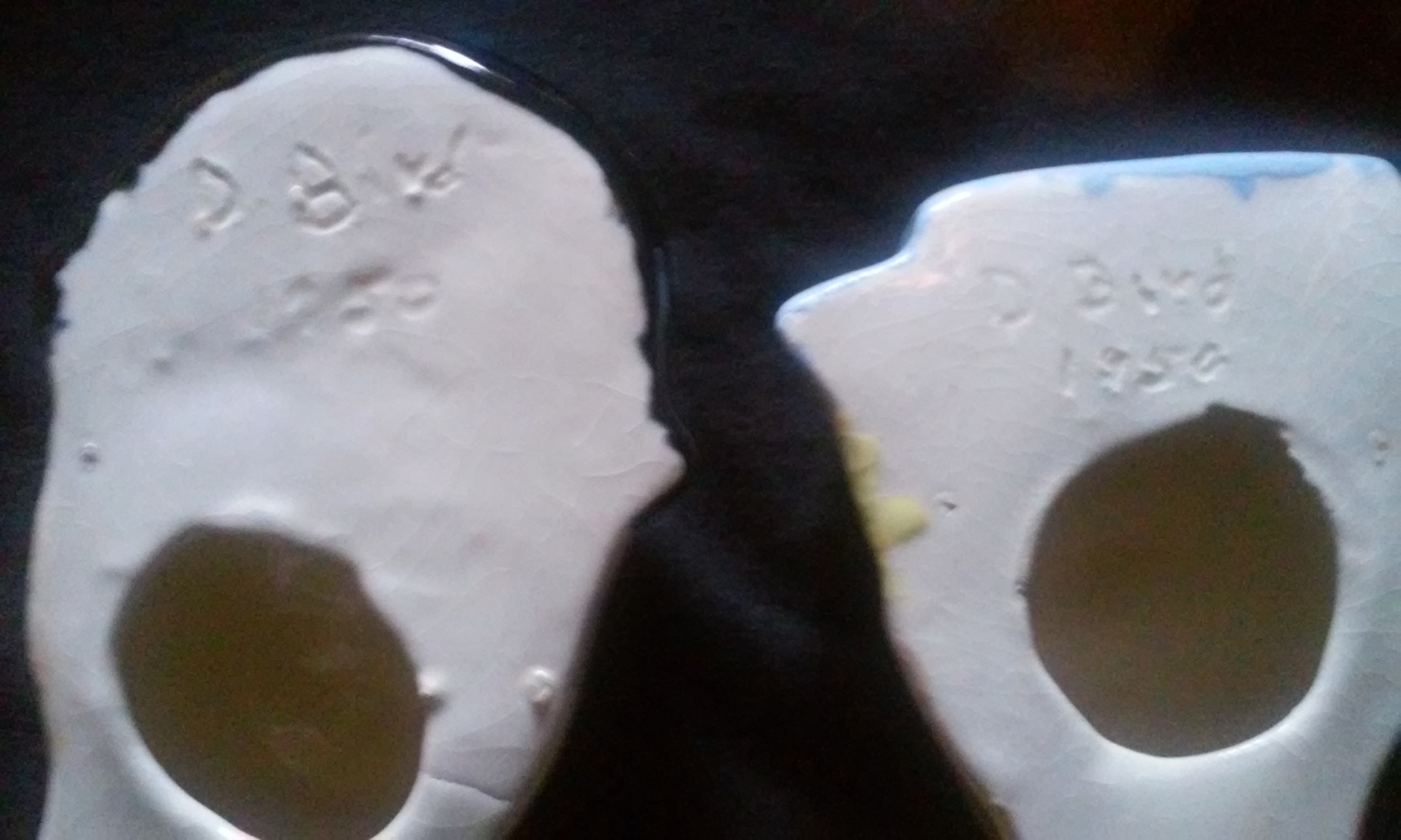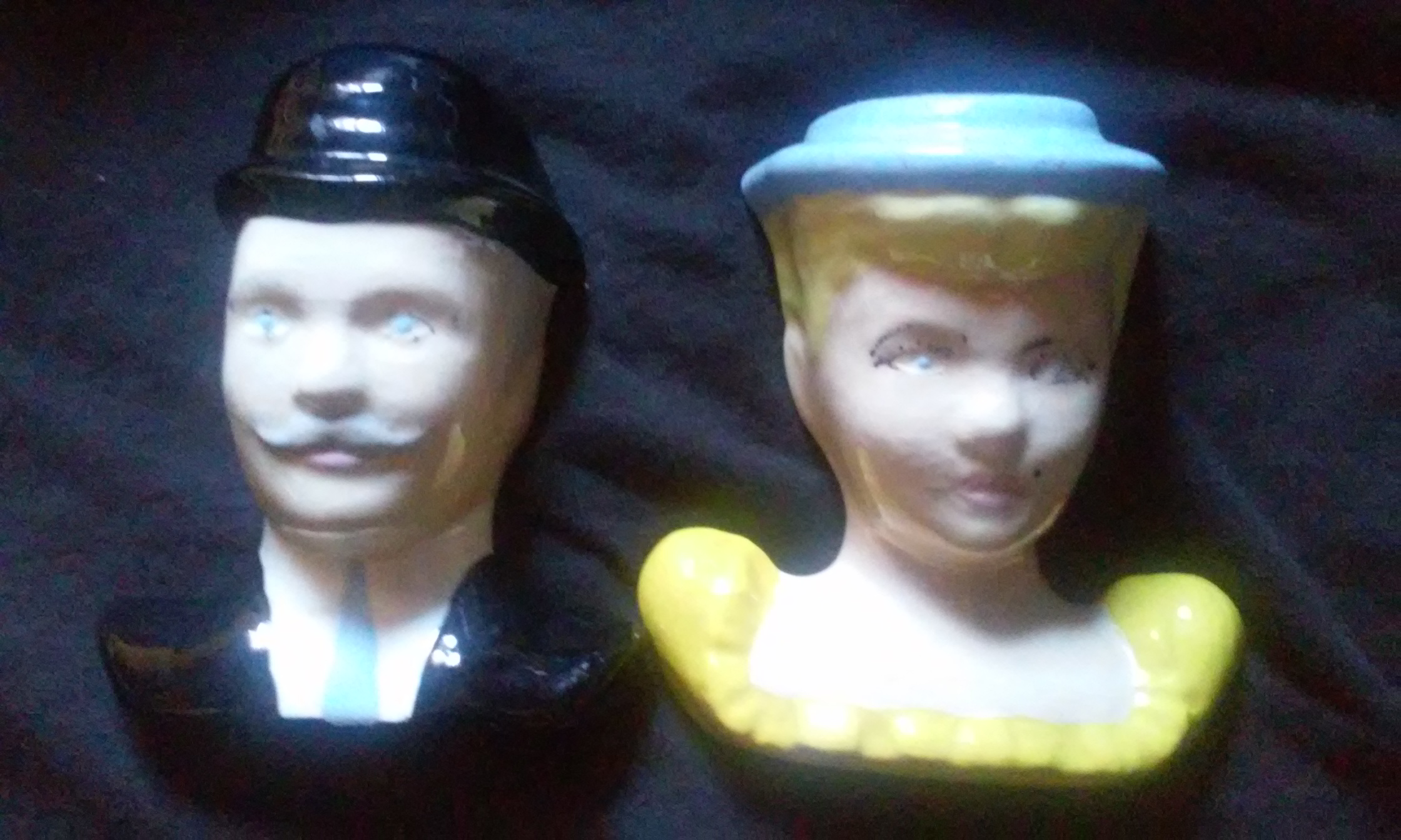 I know nothing about these,I think the girl looks like it could maybe be Marilyn Monroe, and the guy like Chaplin. On the back is d. Bird 1950.