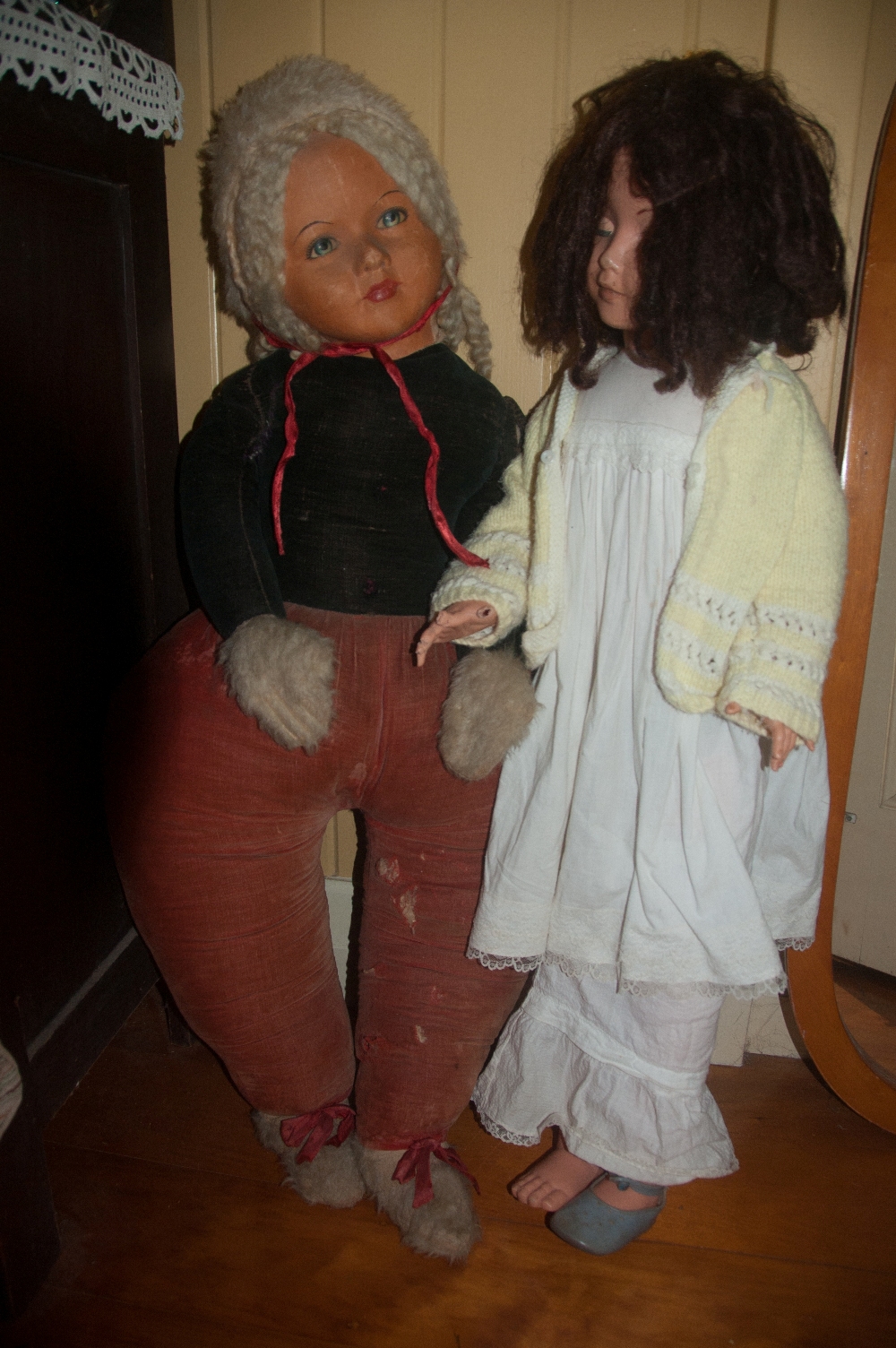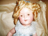 Deans Rag Book Shirley Temple doll from the 1930s. She is the doll on the left in the picture. She is 39in tall and her body is stuffed with kapok. Her head is straw with a cloth mask face. She has a bonnet over her natural wool hair. I am wondering if she ever had a dress as she has large hips and thighs that would make a dress sit out and flow over her. She did have a red button on her waistline, I still have that to sew back on. She is not in the best of condition as she has been handstitched in a few places and just this week I got a cat and he decided to use her leg as a scratching pole. The doll is now protected from the cat!! I am also wondering what she is worth. I have only found one pic on google and that is how I found out that she is actually a Shirley Temple doll. I knew she was a Deans Rag Book doll as she has the label under her foot. The only other pic that I saw of her said that she was rare.