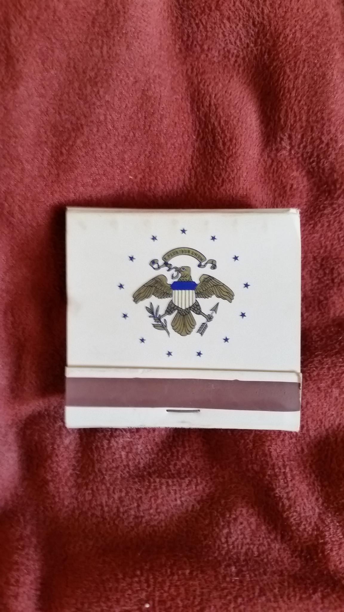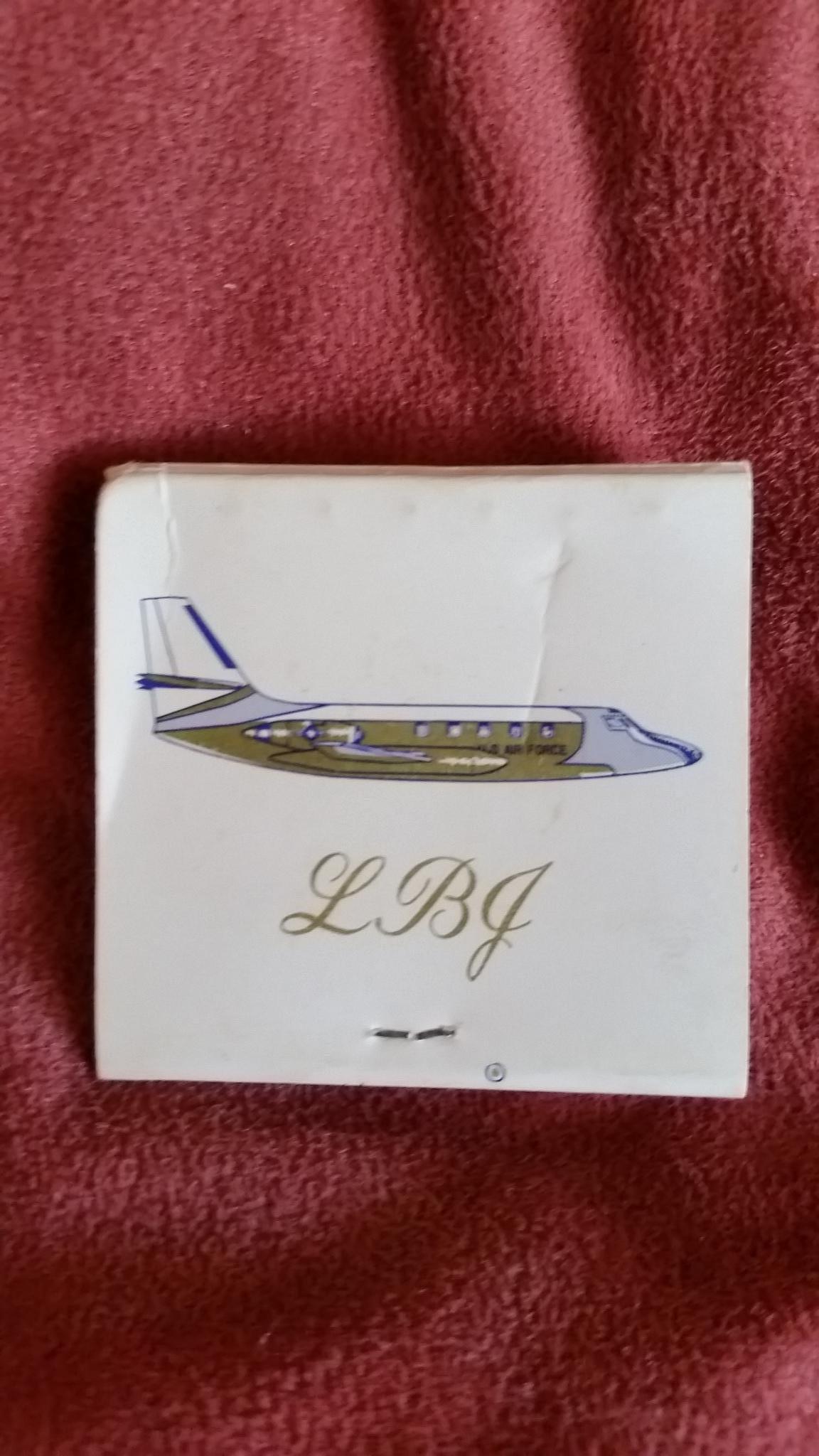 Antique dishes, a deck of unopened playing cards with LBJ's initials that was on Airforce One. A piece off of an old Chevy, I believe. For years I thought it was a hood ornament, but since I've thought it to possibly be to a gas tank..., & there's a pack of matches with LBJ's initials on. Possibly a martini pitcher with 2 glasses, & a little fountain pen holder couch