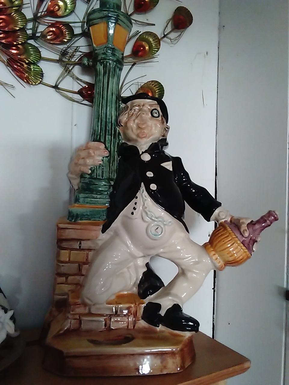 Description Liquor decanter Lightpole with drunk Stamped 1969 italy and new york Marked Barsottini Importer: Banfi Products Corp Approximately 16" tall