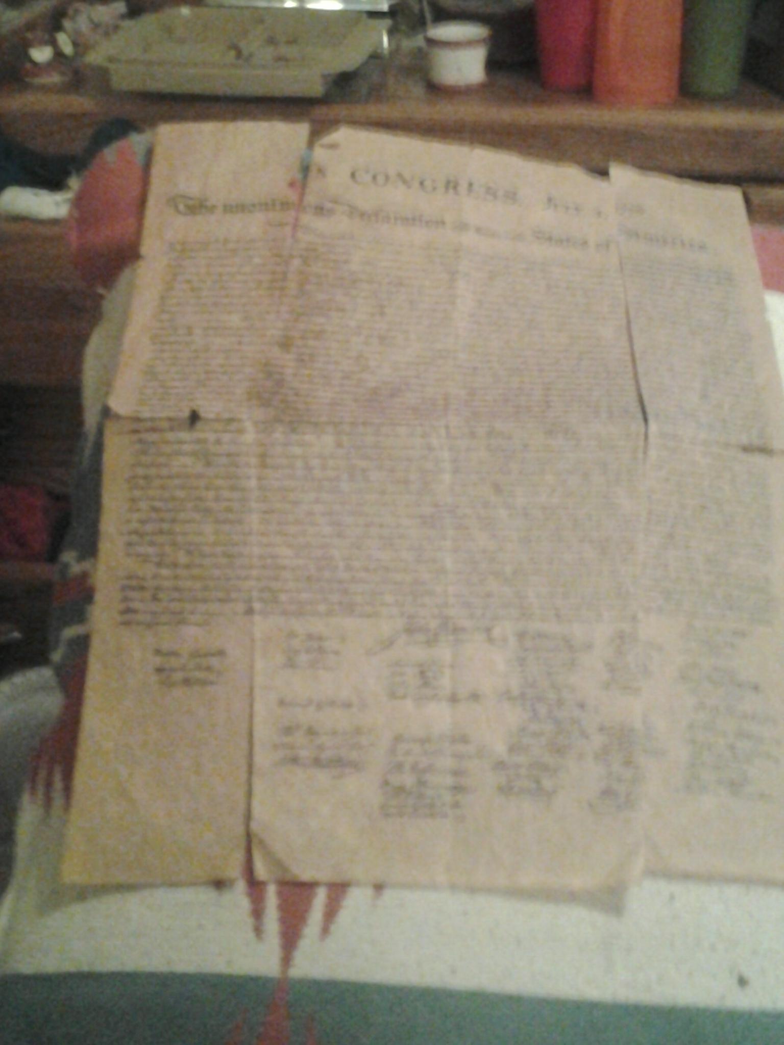 DECLARATION OF INDEPENDENCE Father had it in the attic Father passed it away Could it be worth anything