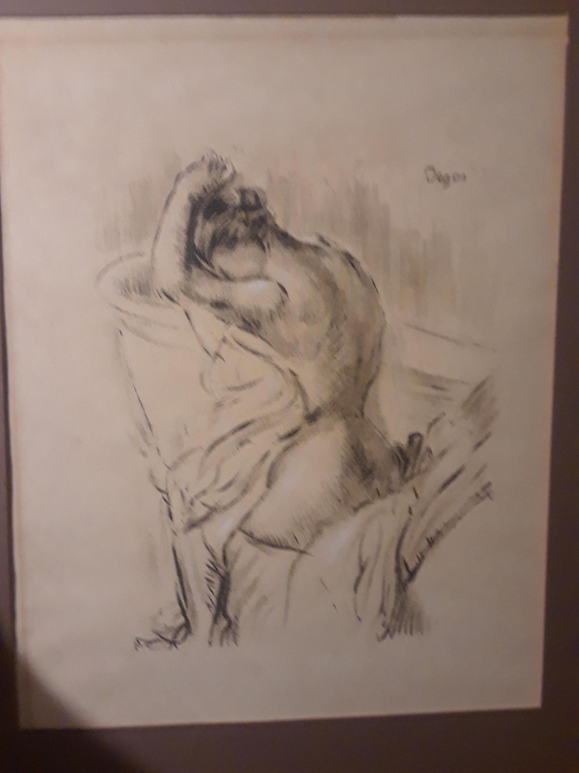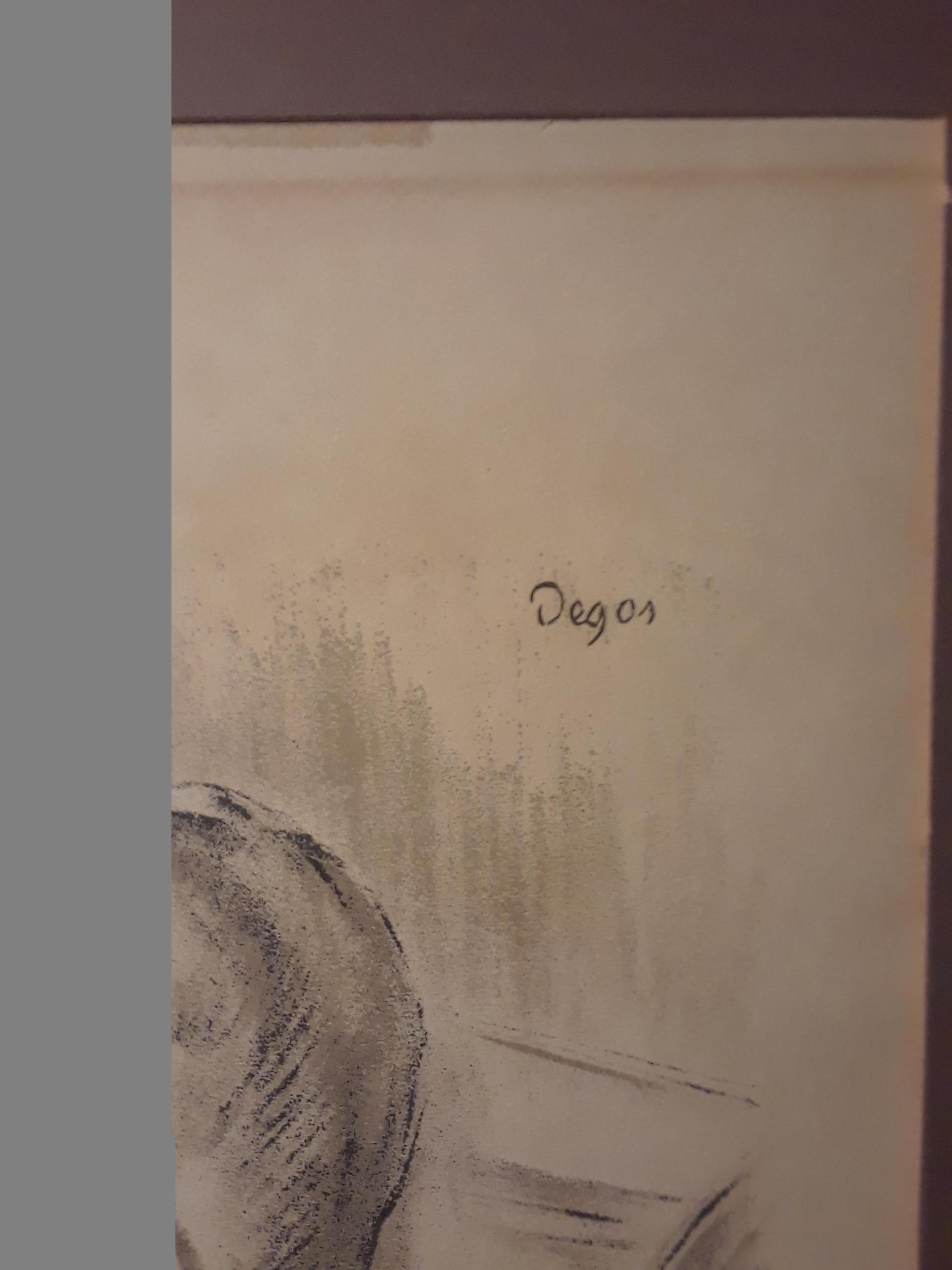 I recieved this piece from an old friend...she gave me this sketch, and said she was happy to give it to me...it looks like a sketch on old yellowish paper...thin...and a signiture, Degas, in the upper right...not sure anything more...
