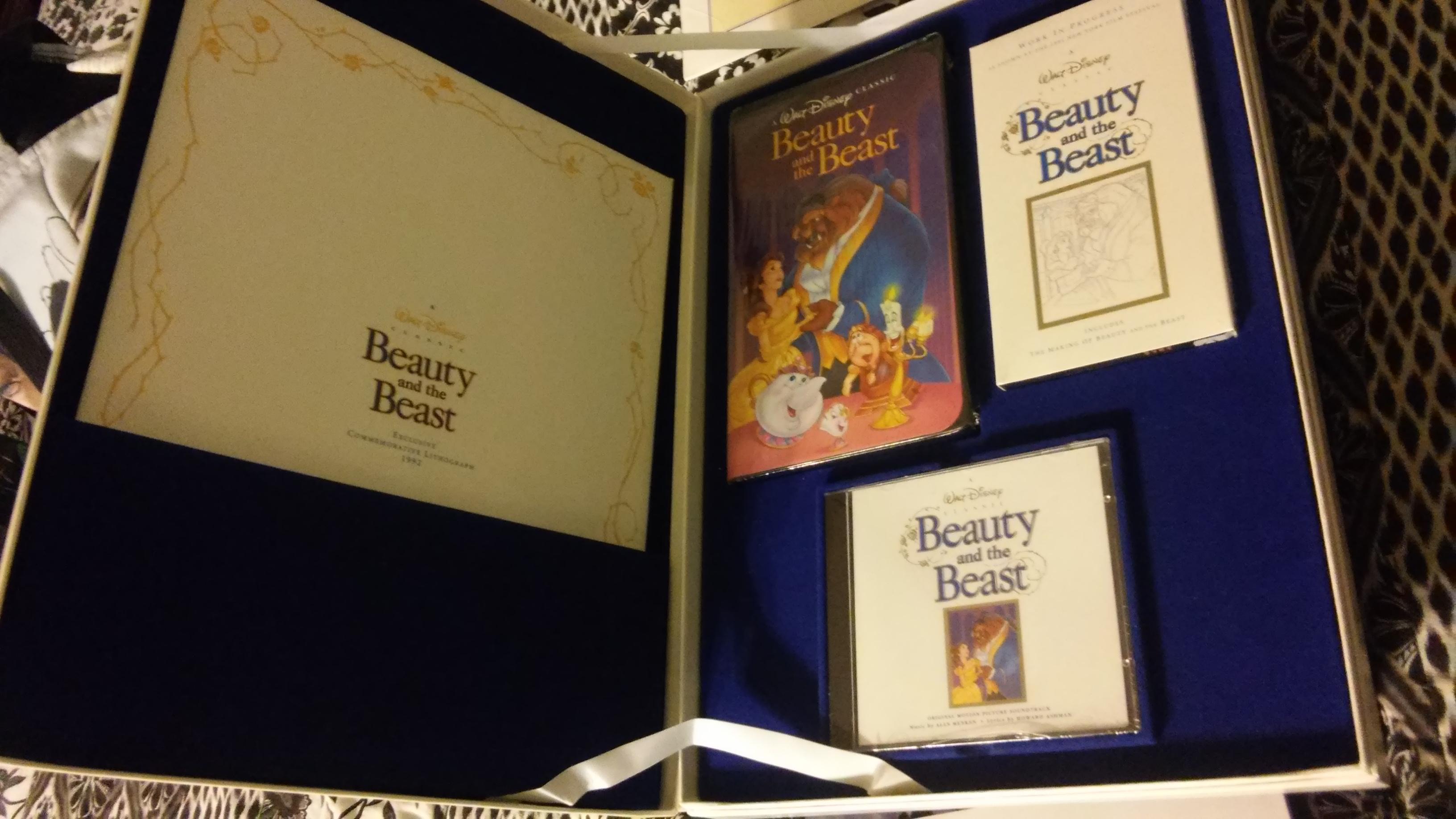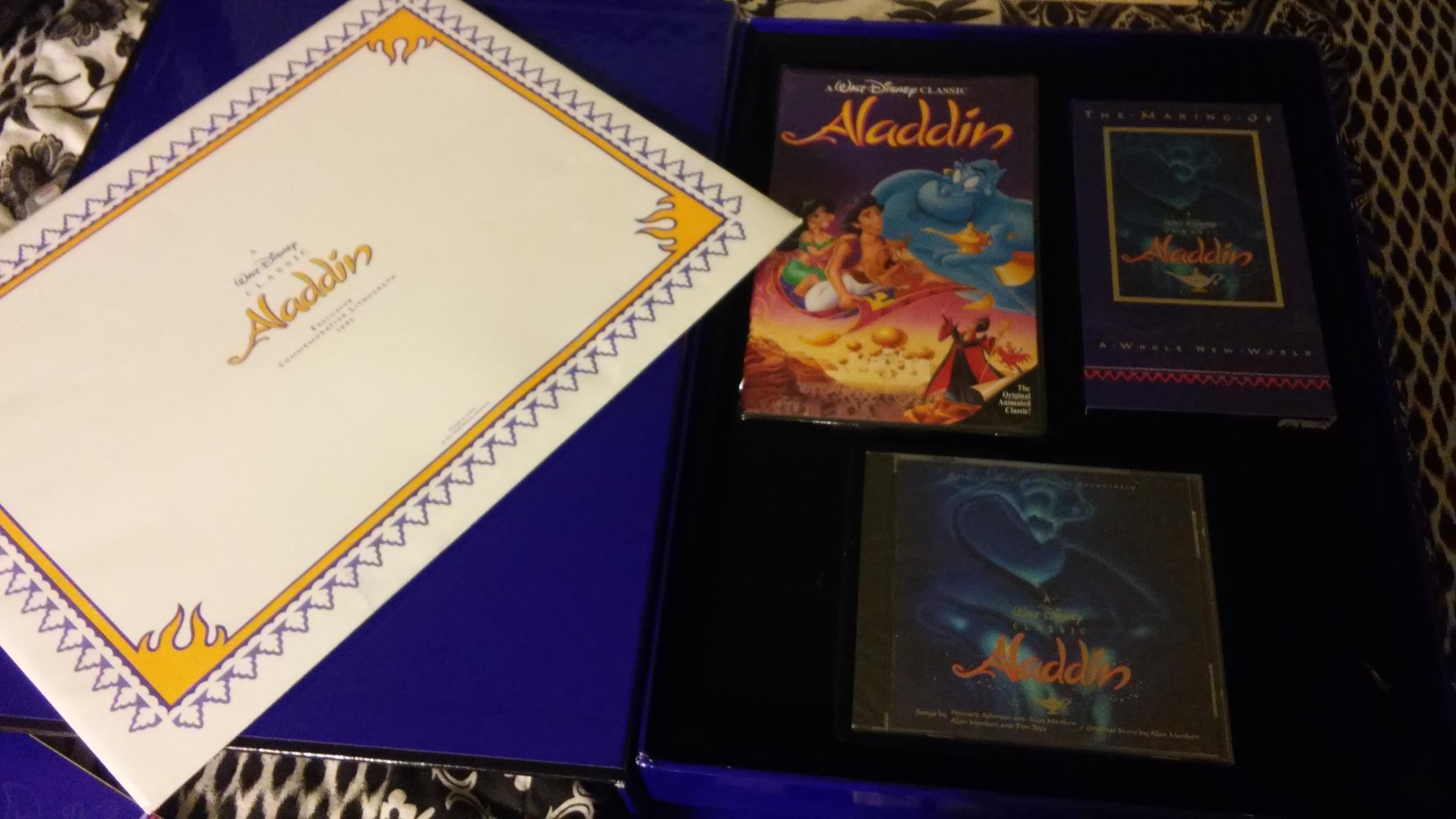 I have an Aladdin Deluxe edition vhs edition which includes original animated classic (sealed), the making of vhs (sealed), original soundtrack CD (sealed), making of booklet, and commemorative lithograph (number 14716/35000). Also have same set in Beauty and the Beast with sealed movies and CD