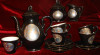 Hello. Have a porcelain demitasse tea (or coffee) set consisting of 5 cups/saucers, tea (or coffee pot), creamer, sugar bowl, and what i'd guess are 5 small mini desert plates. Only markings are stamped Germany with a half circle over it and the number 18 in red. A few dimensions, cups 2"h x 2 1/4" dia.. Saucers are 4 3/8" dia.. Tea (or coffee) pot is 6 1/2" high x 5 1/2" spout to handl. And the desert plates are 5 1/4" dia.. I am assuming its hand painted