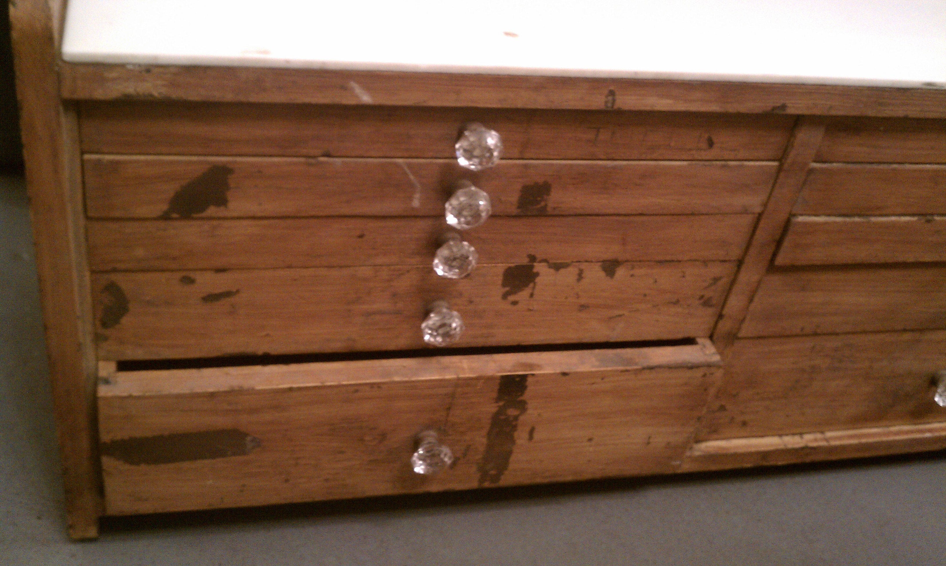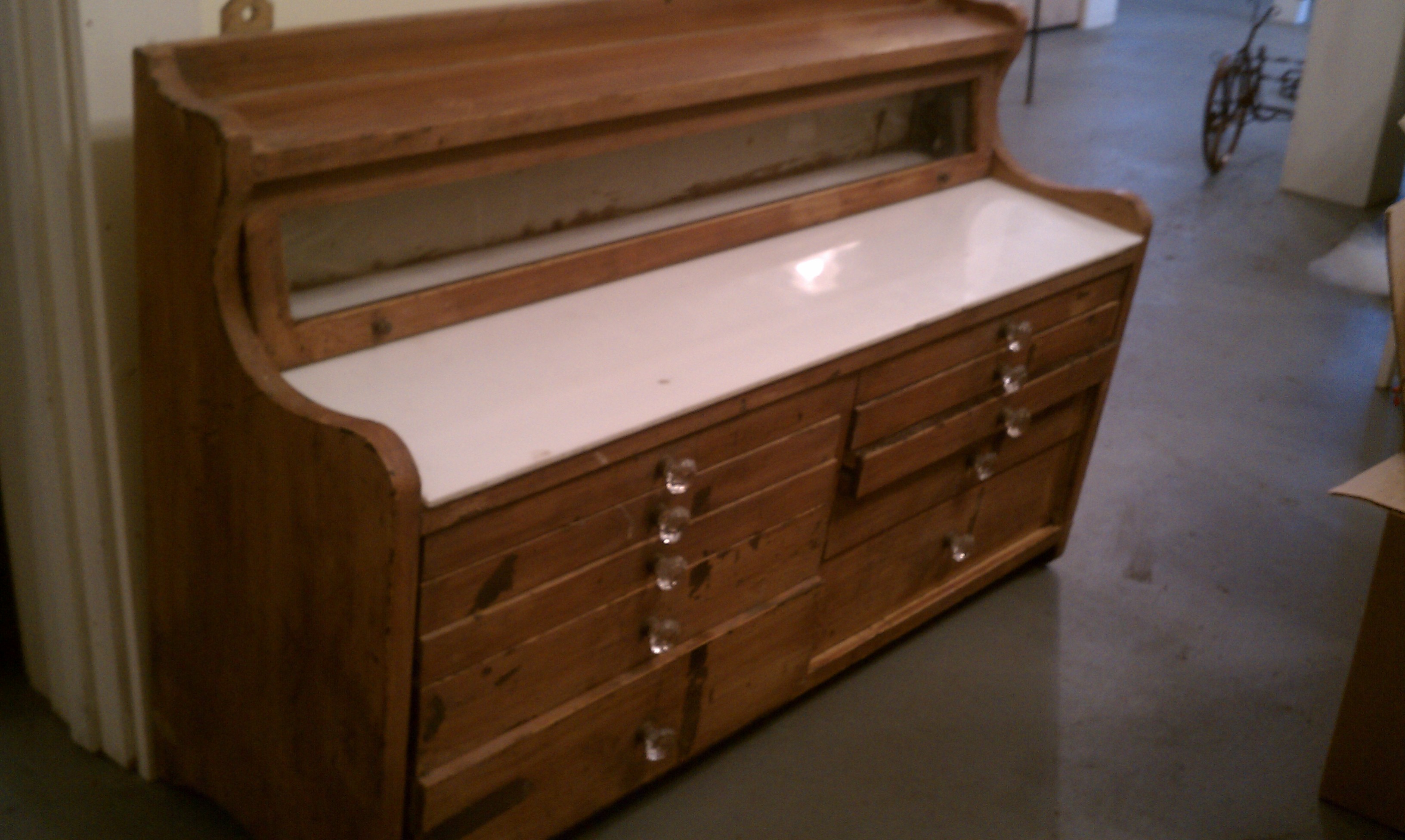 It is in ok shape that is totally complete with all the knobs and handles. It had a dark stained