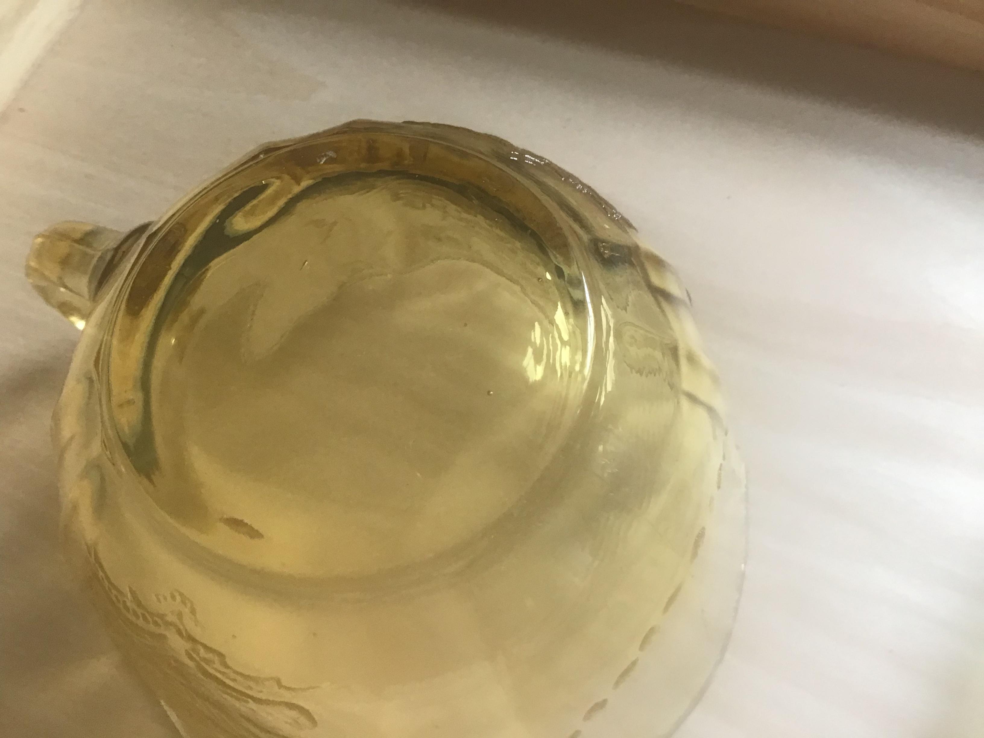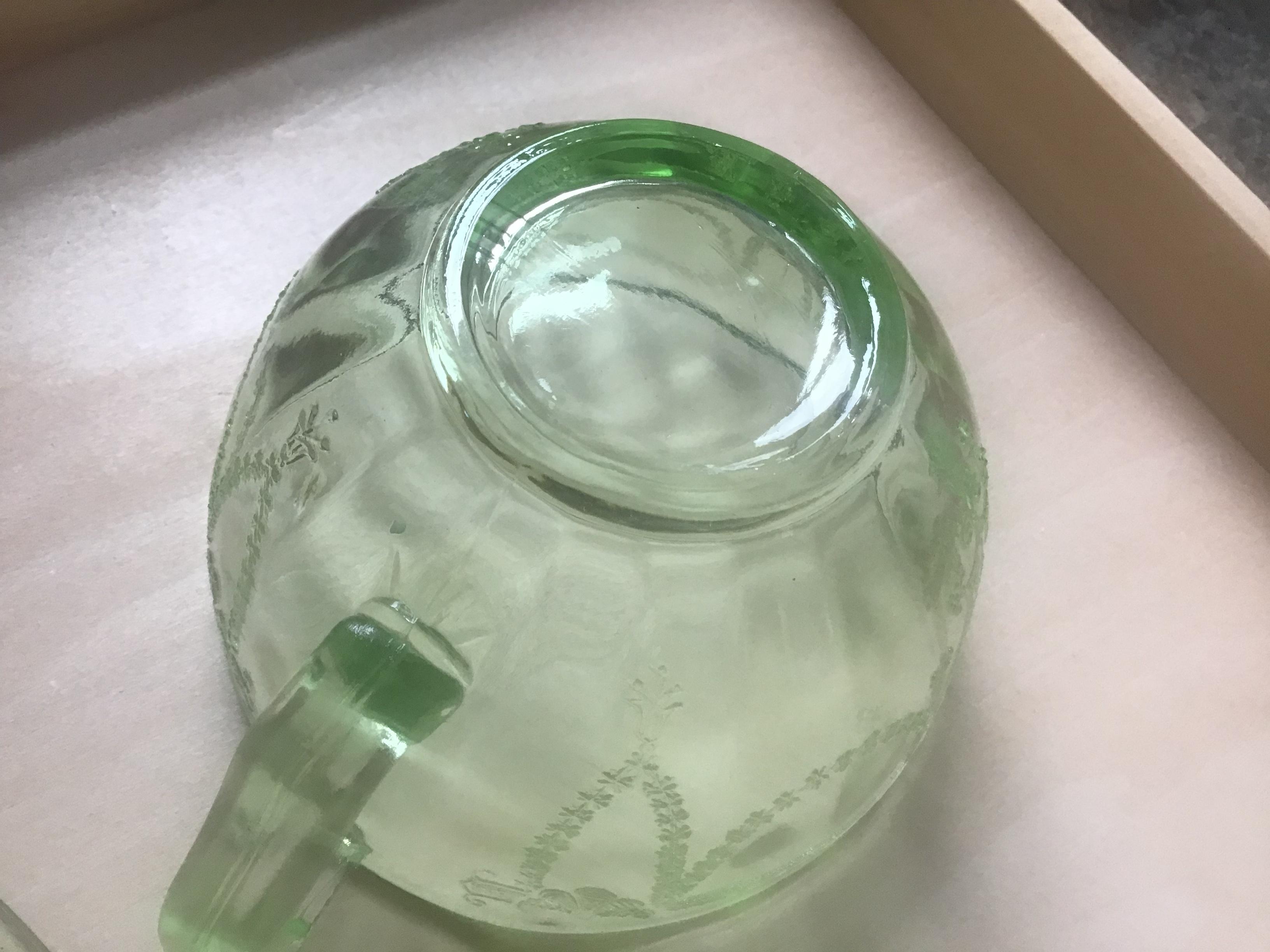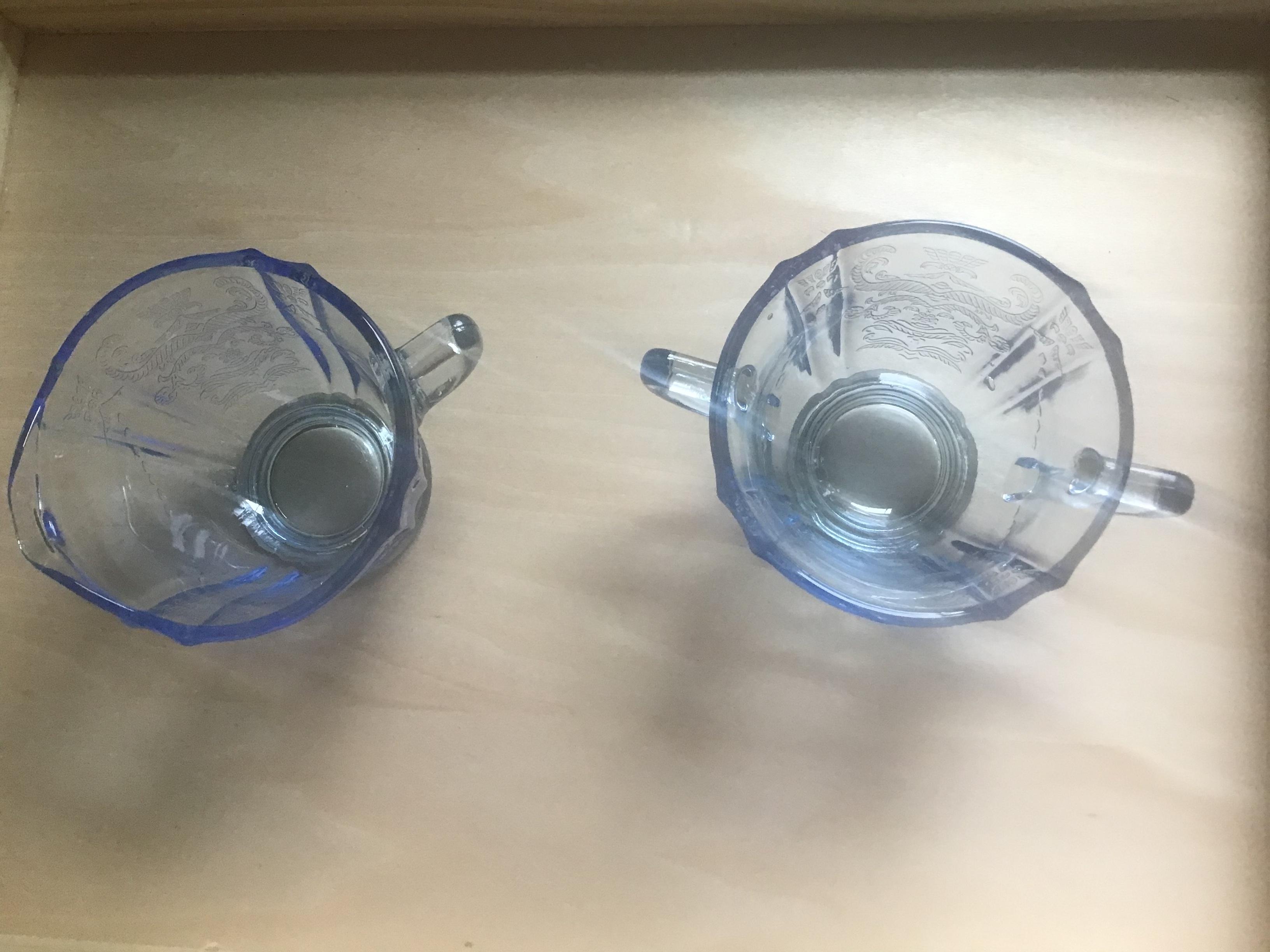 I picked up this gorgeous glass at a flea market. I am wondering if it is real depression era glass or reproduction. I am pretty sure the green, pink, and yellow are real because they have straw lines, bubbles, and yellow has some chips in edge. The blue has bubbles but seems too thick to be real? It also isn't brilliant cobalt blue, but lighter and I am not sure if this was a production color of the 30s and 40s. I also need to know what the patterns are on the blue, yellow, and pink. I know the green is Cameo. Any idea what it is worth? I originally bought it to use but then found out depression glass is not safe to use due to arsenic, lead, cadmium and uranium. Thank you in advance!