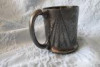 Has screw off cap with some cork left in it. I think it is Art Nouveau flowers on it but not sure.